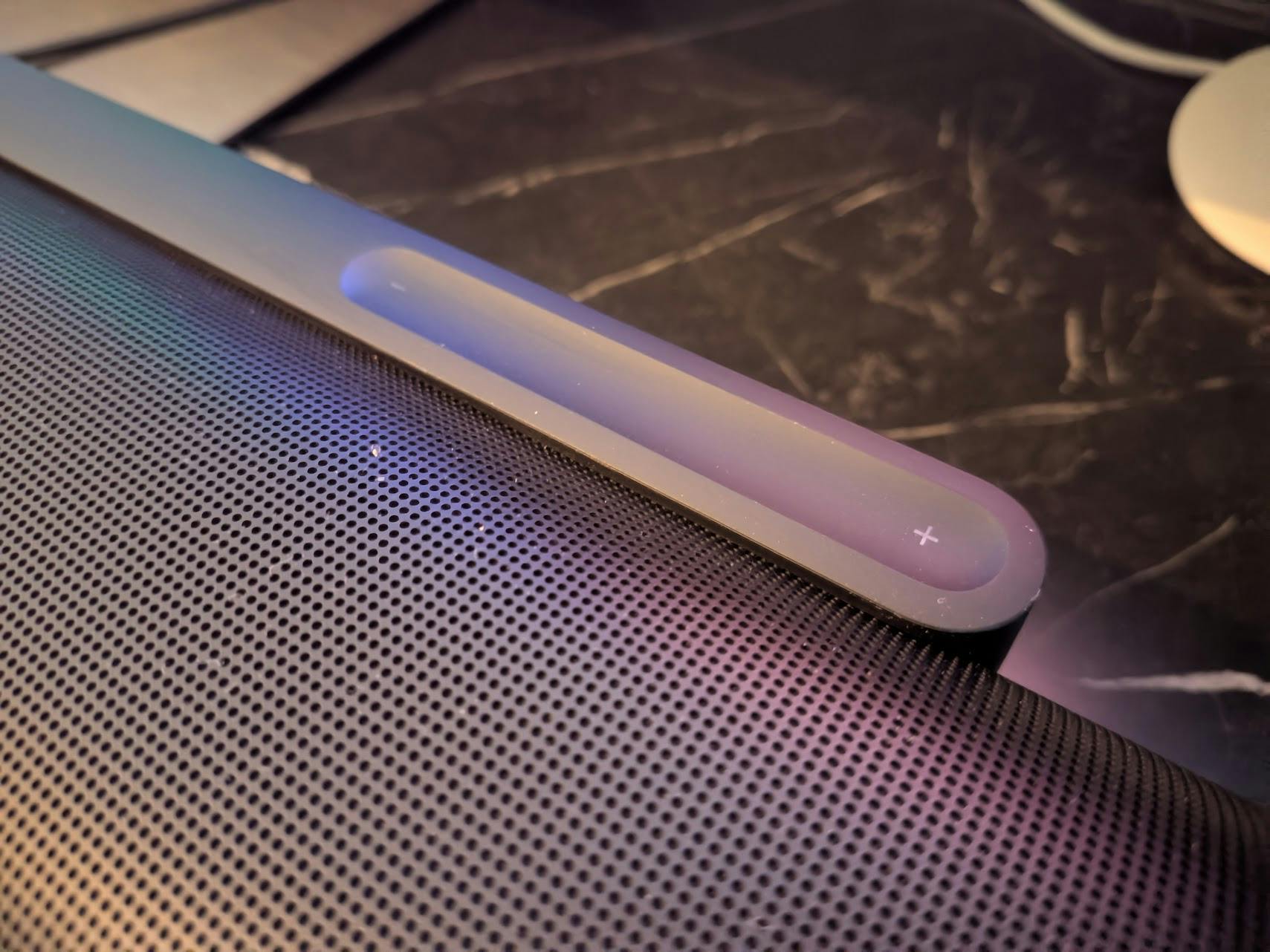 Qua ontwerp is de Arc Ultra een typisch Sonos-product, en lijkt hij veel op zijn voorganger. Afgeronde hoeken, ontelbare kleine geperforeerde gaatjes in de behuizing en aanraakgevoelige knoppen op de bovenkant. Er zijn echter ook subtiele vernieuwingen doorgevoerd. Denk aan een aanraakgevoelige balk om het volume aan te passen. De soundbar is ook wat breder, en nu vrijwel even breed als een moderne 55inch-televisie.