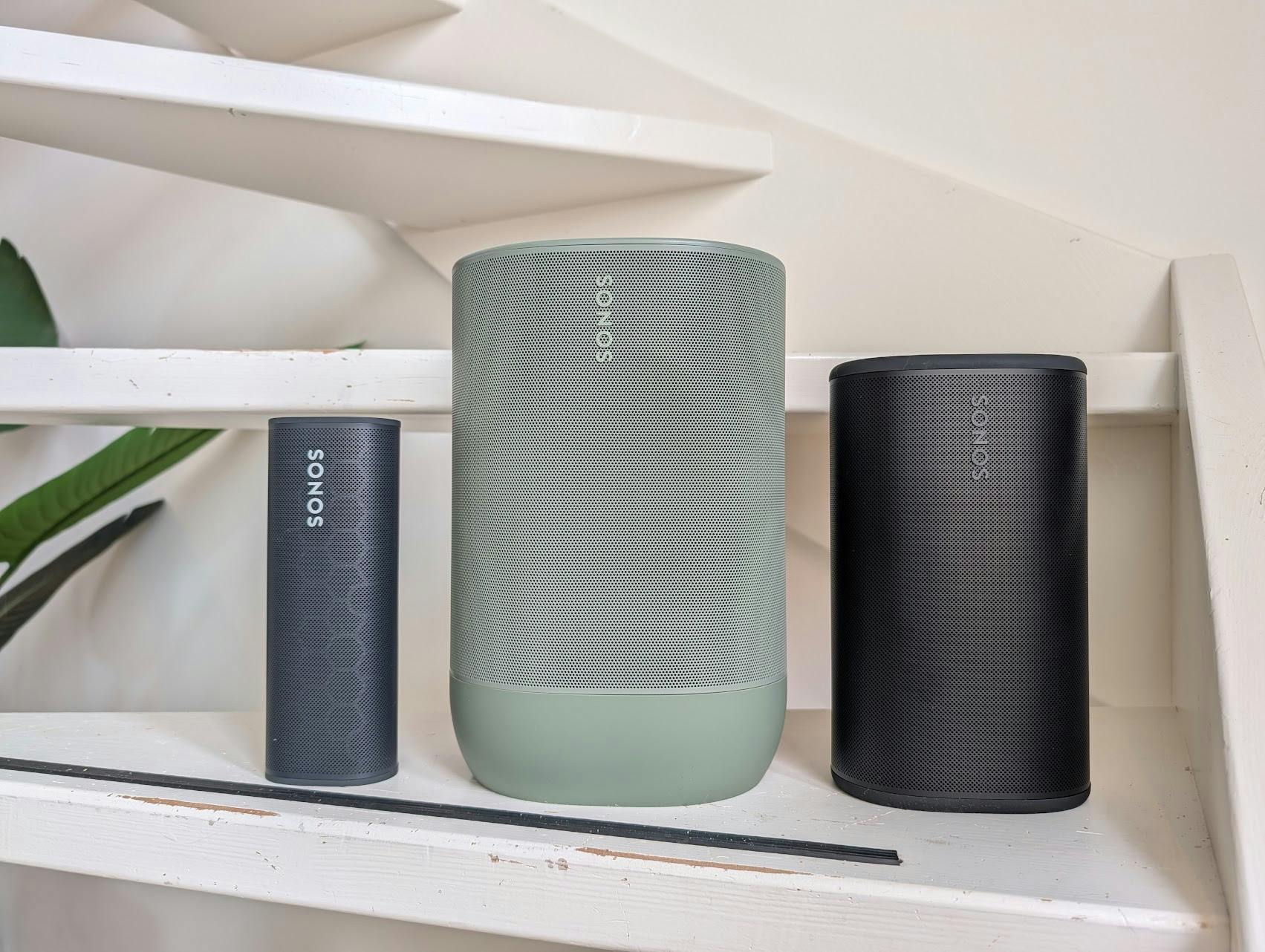 Na een paar jaar radiostilte brengt Sonos weer een nieuwe speaker uit. Maak kennis met de Sonos Play, die een adviesprijs van 349 euro heeft. Qua formaat, specificaties en prijs valt de speaker tussen de eerder gelanceerde Roam 2 en Move 2 in. Die modellen gebruiken wij thuis ook, dus kunnen we goed vergelijken met de Play. Op onderstaande foto's zie je alvast het verschil in formaat tussen de drie speakers.