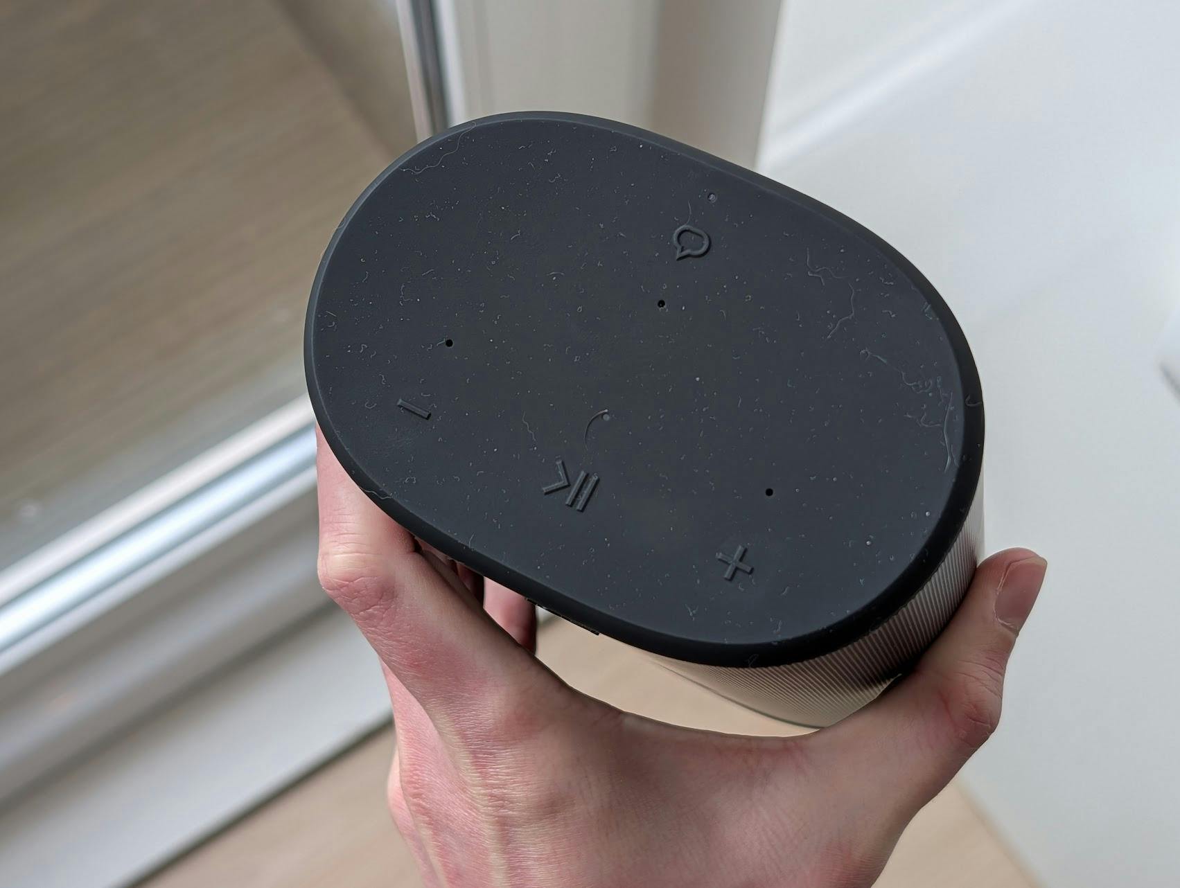 De Play is goed met één hand op te pakken en past prima in je rugtas. Hij is met 1200 gram niet licht, maar ook niet te zwaar om een last te zijn als je hem meeneemt. De behuizing kan tegen water en stof, dus je kunt de Play ook zorgeloos gebruiken op het strand of aan het zwembad. De speaker heeft een stevige behuizing die tegen een val kan, belooft Sonos. Wij hebben de Play één keer per ongeluk laten vallen op onze houten vloer, en dat leverde geen zichtbare schade op. De speaker is te koop in het zwart en wit en heeft indrukbare knoppen op de bovenkant. De iconen van de knoppen hadden naar onze mening duidelijker zichtbaar mogen zijn. Dankzij de lus aan de bovenkant van de Play kun je hem aan je tas bevestigen of even losser in je hand vasthouden.