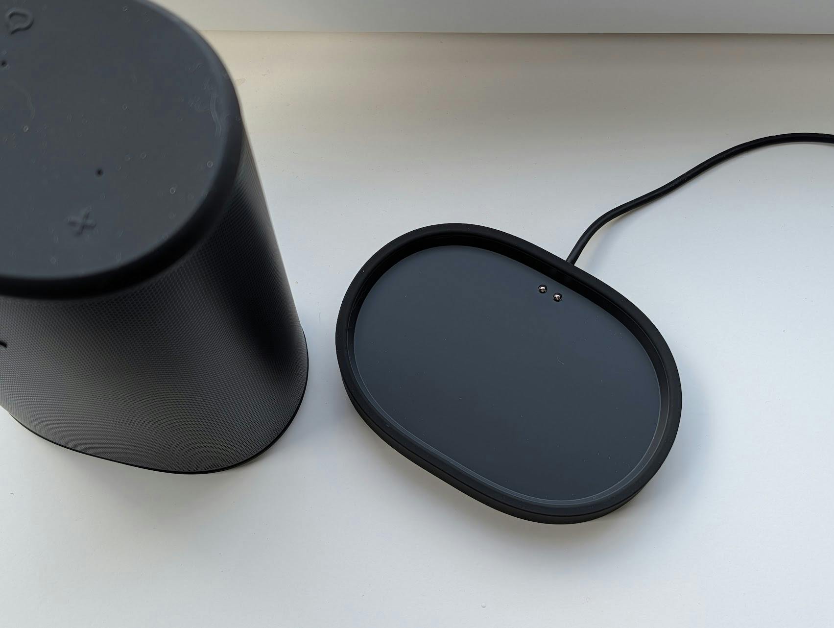 Je kunt de speaker opladen via zijn usb-c-poort of via een meegeleverd dockingstation met magnetische pinnetjes. Zo kun je de Play draadloos opladen en makkelijk pakken. Het dockingstation zelf heeft wel een kabel. De accu gaat in onze situatie ongeveer 22 uur mee, wat een prima score is. Er zijn overigens ook (bluetooth)speakers die nog langer meegaan.