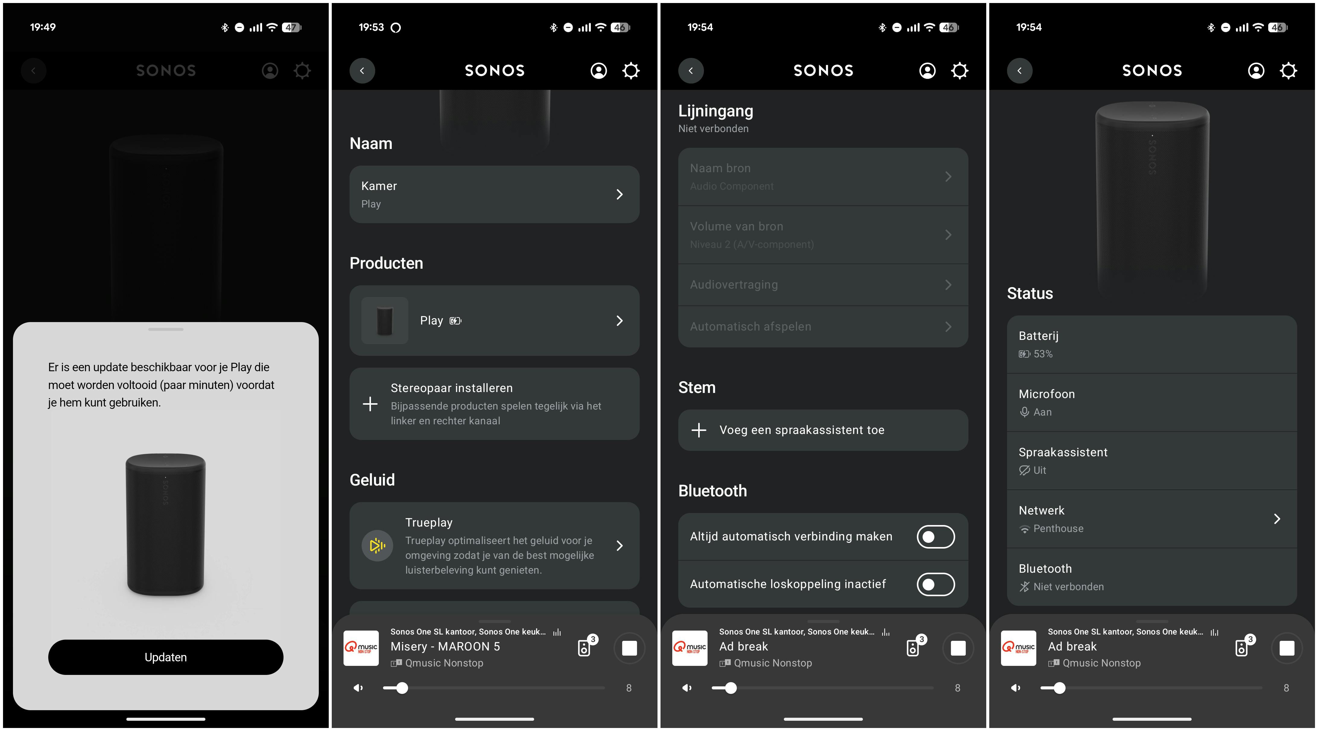 Muziek afspelen kan via de Sonos-app, maar ook via streamingdiensten als Spotify en Apple Music. Je kunt bijvoorbeeld ook gebruikmaken van Apple AirPlay 2. In de Sonos-app bepaal je of de muziek alleen uit de Play komt of uit meer Sonos-speakers, als je die hebt natuurlijk. Het Sonos-ecosysteem blijft erg prettig werken, mede dankzij slimme functies als het automatisch kalibreren van de geluidskwaliteit aan de hand van de ruimte waar de speaker zich bevindt.