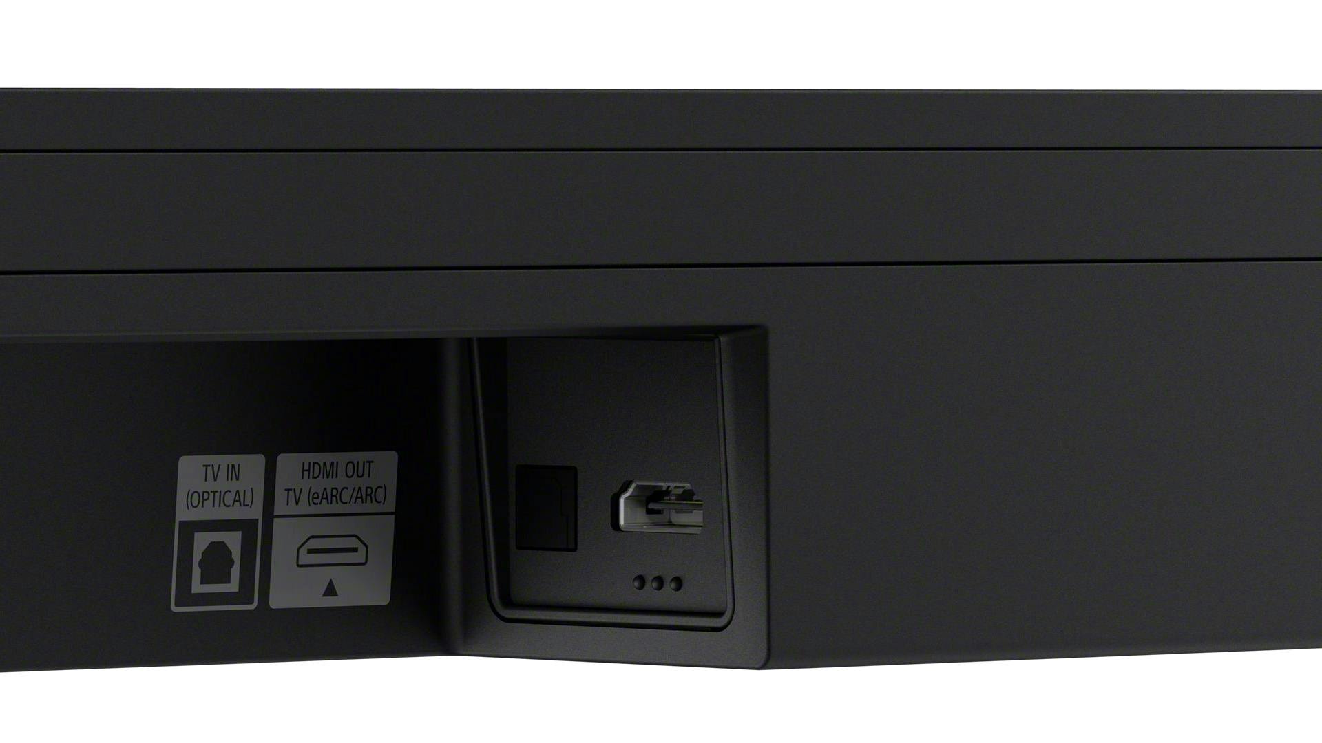 Bij de Bravia Theatre Bar 6 merk je die sobere aanpak op verschillende vlakken. Streaming via wifi (zoals AirPlay of Chromecast) ontbreekt en veel ingangen ga je hier niet vinden. Er is één HDMI-eARC-ingang die je gebruikt voor de verbinding met de tv. Mocht je televisie ouder zijn en geen HDMI-eARC of -ARC hebben, dan is er nog een terugvaloptie in de vorm van een optische ingang. Die kun je echter niet gebruiken voor iets anders, zoals een cd-speler. Extra HDMI-ingangen zijn er niet, dus eventuele consoles of mediaspelers moet je rechtstreeks met het tv-toestel verbinden.