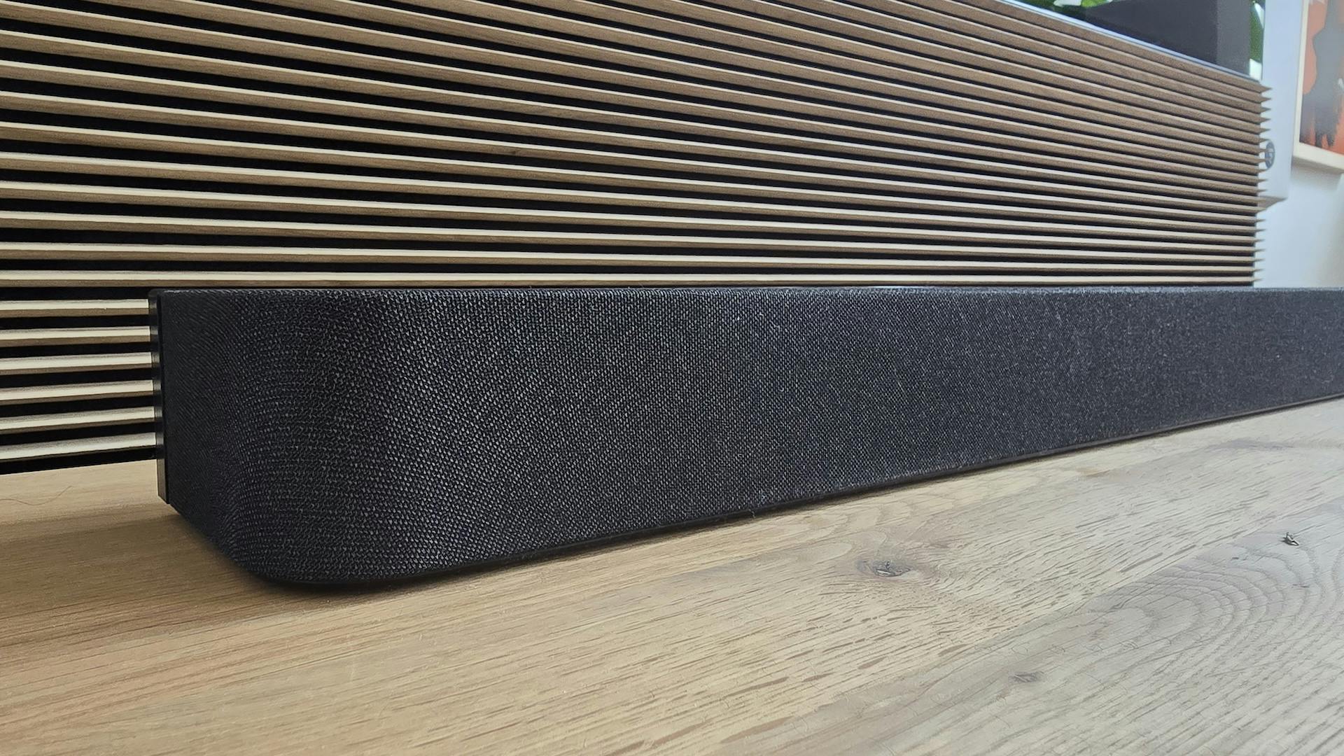 Het nieuwe design verschilt enorm van voorgaande Sony-modellen, die hadden veel elementen van glas en metaal. De Bravia Theatre Bar 8 heeft nog wel een zwart-metalen rand met een aantal touchknoppen – in de praktijk zal je overigens vaker de meegeleverde mini-afstandsbediening of de Bravia Connect-app gebruiken. Er zit geen display op de Sony-soundbar, zelfs niet verstopt achter de stof (zoals bij Samsung doet). Er is een aantal ledjes die oplichten, maar echt nuttig zijn ze niet.