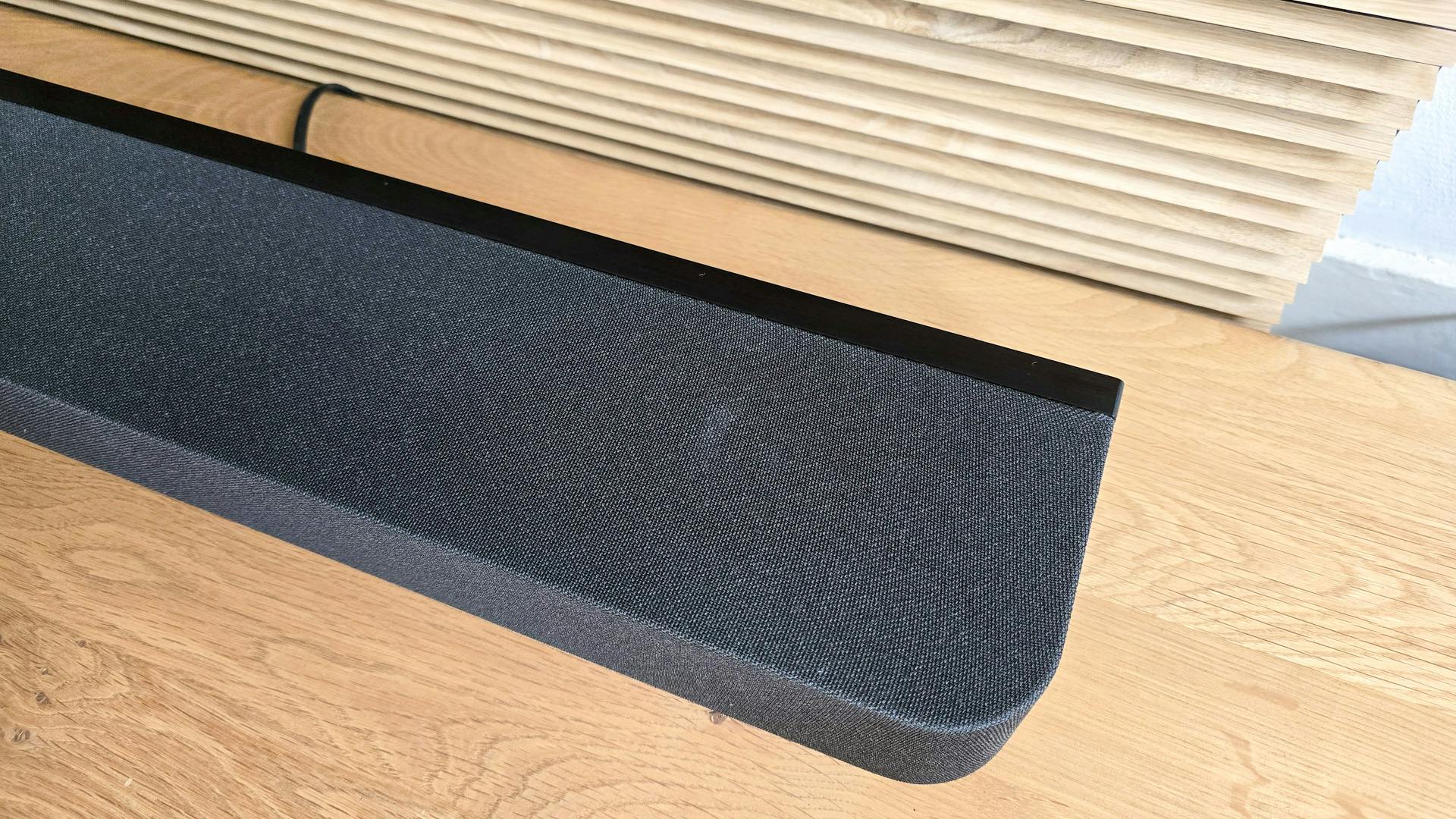 De afgeronde hoeken en het textiel zorgen voor een wat zachtere uitstraling die de Bravia Theatre Bar 9 een subtiele verschijning geeft. Er is zelfs geen display dat je afleidt tijdens het tv-kijken. Er zijn enkel een paar leds die van achter het luidsprekerdoek oplichten, maar heel veel vertellen ze je niet.