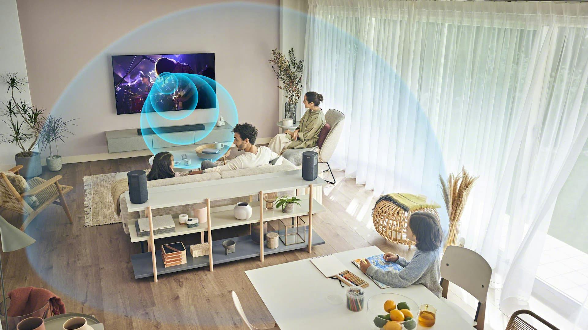 Bij het HT-A9-systeem met vier draadloze speakers werkt deze technologie heel goed, bij de HT-A5000 is het eveneens effectief. Het beste resultaat ga je wel krijgen met de optionele draadloze speakers. Dan zal 360 Spatial Sound Mapping een bubbel van geluid rond de sofa creëren.