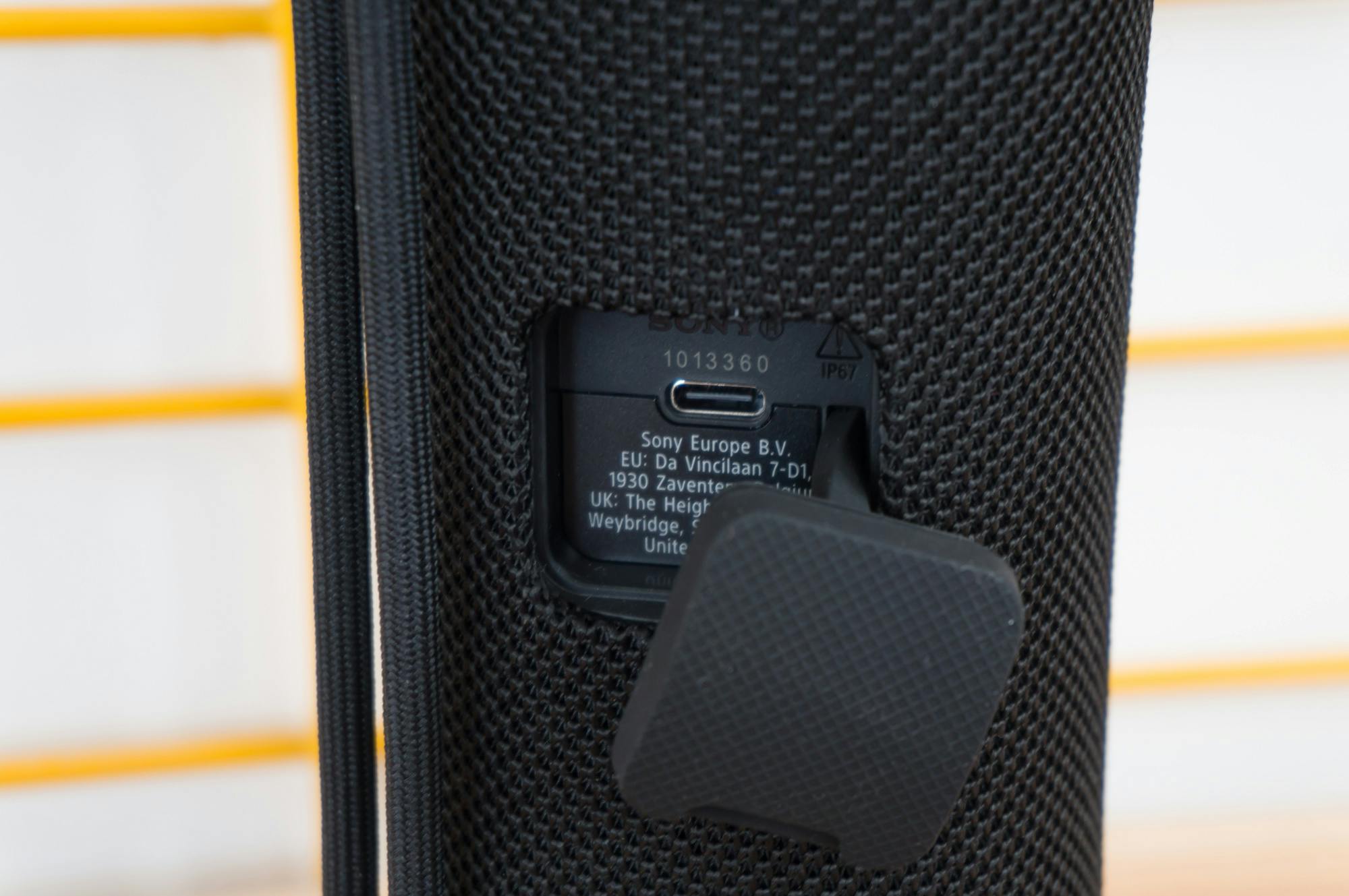 De usb-c-poort die bedoeld is voor opladen is achter een klepje geplaatst. Een volledig lege accu opladen duurt ongeveer 5 uur. Dat klepje moet je goed dichtdoen als je de Field 1 niet oplaadt, want alleen dan is de speaker IP67-waterbestendig. De usb-c-poort is alleen voor opladen, de Sony ULT Field 1 doet geen dienst als powerbank voor je telefoon. Sony heeft de Field 1 verder van een microfoon voorzien, waardoor je hem ook als speakerphone kunt gebruiken om handsfree te bellen.