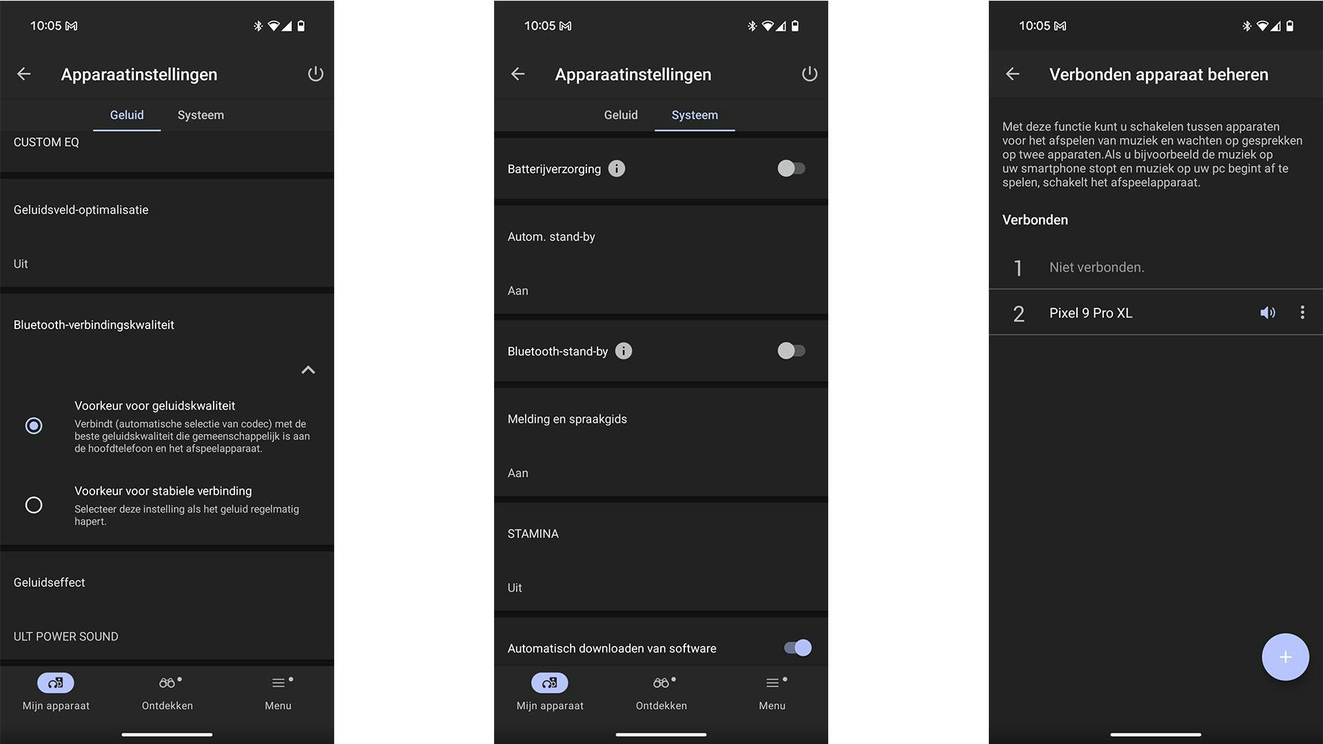 Je bedient de Sony ULT Field 3 op twee manieren: via de Music Connect-app of via de strip bovenop. Binnen de applicatie regel je diverse instellingen, zoals de bluetoothkwaliteit en geluidsoptimalisatie. We hebben de optimalisatie op een gegeven moment uitgeschakeld en gemerkt dat de speaker dan beter klinkt dan voorheen. Verder is het zo dat je zowel die stand als de ULT-knop moet uitschakelen om de equalizer te kunnen gebruiken. Dat is best jammer, zeker in het geval van ULT. Je eigen instellingen evenaren die van de Sony-geluidsoptie namelijk niet.