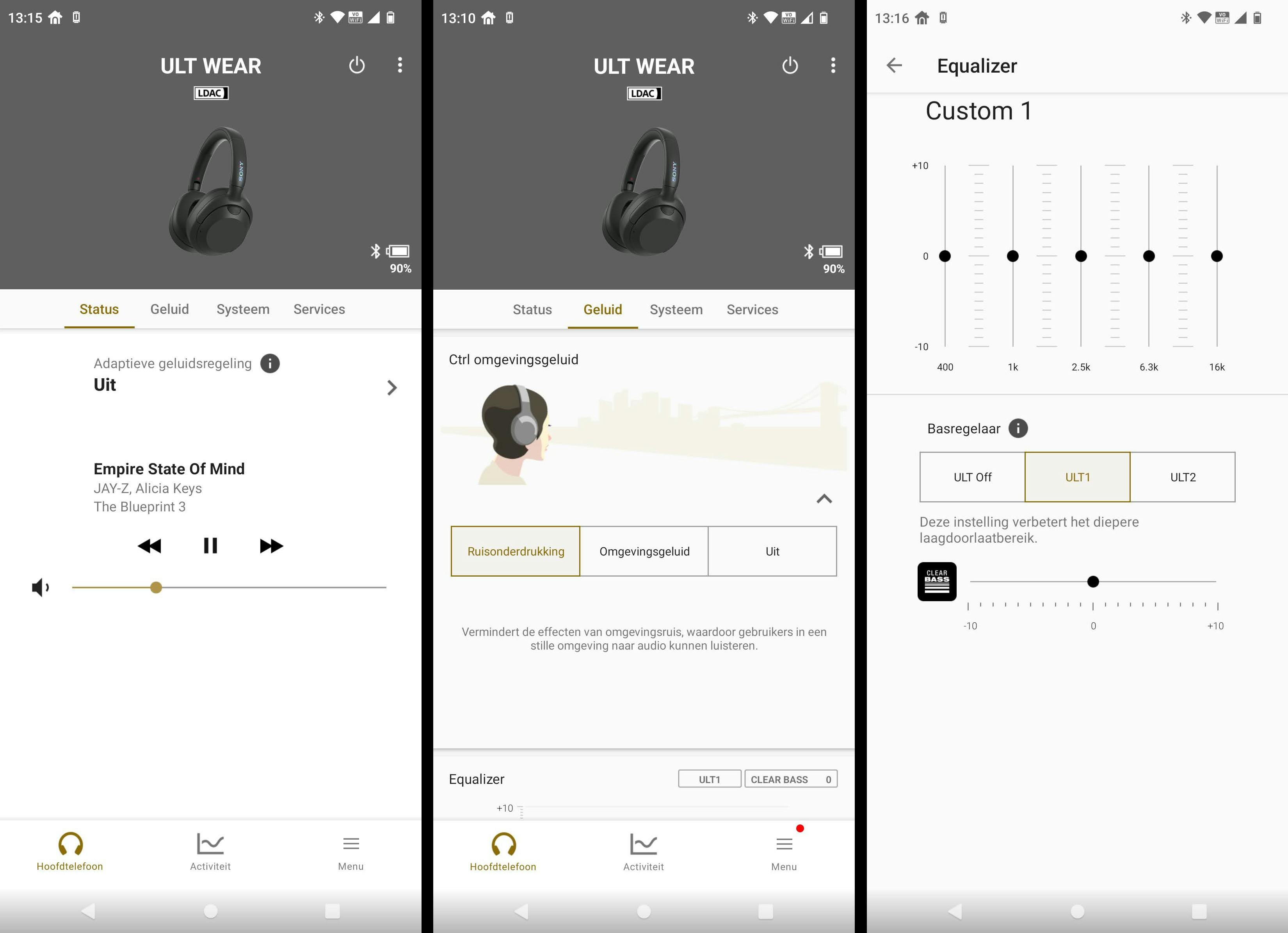 Bij de ULT Wear gaat het echter om nóg meer bas in de vorm van de twee ULT-standen die je snel via het knopje kunt selecteren. Beide standen doen hoorbaar zeker iets en zetten basgeluiden extra aan. De ULT1-stand die Sony ook wel Deep Bass noemt, kunnen we in sommige muziekgenres zoals hiphop nog wel waarderen. Je levert in de hogere en middentonen wel hoorbaar wat sprankeling in, maar krijgt wel het gevoel dat er een subwoofer wordt ingeschakeld. Dit is ook wel lekker tijdens het kijken naar een actiefilm. Zelf luisteren we muziek liever zonder ULT1 ingeschakeld, maar we kunnen ons voorstellen dat deze stand nog nuttig is. De ULT2-stand die Sony ook wel Attack Bass noemt, is wat ons betreft echter te overdreven aangezet en vervormt alle tonen simpelweg te veel.
