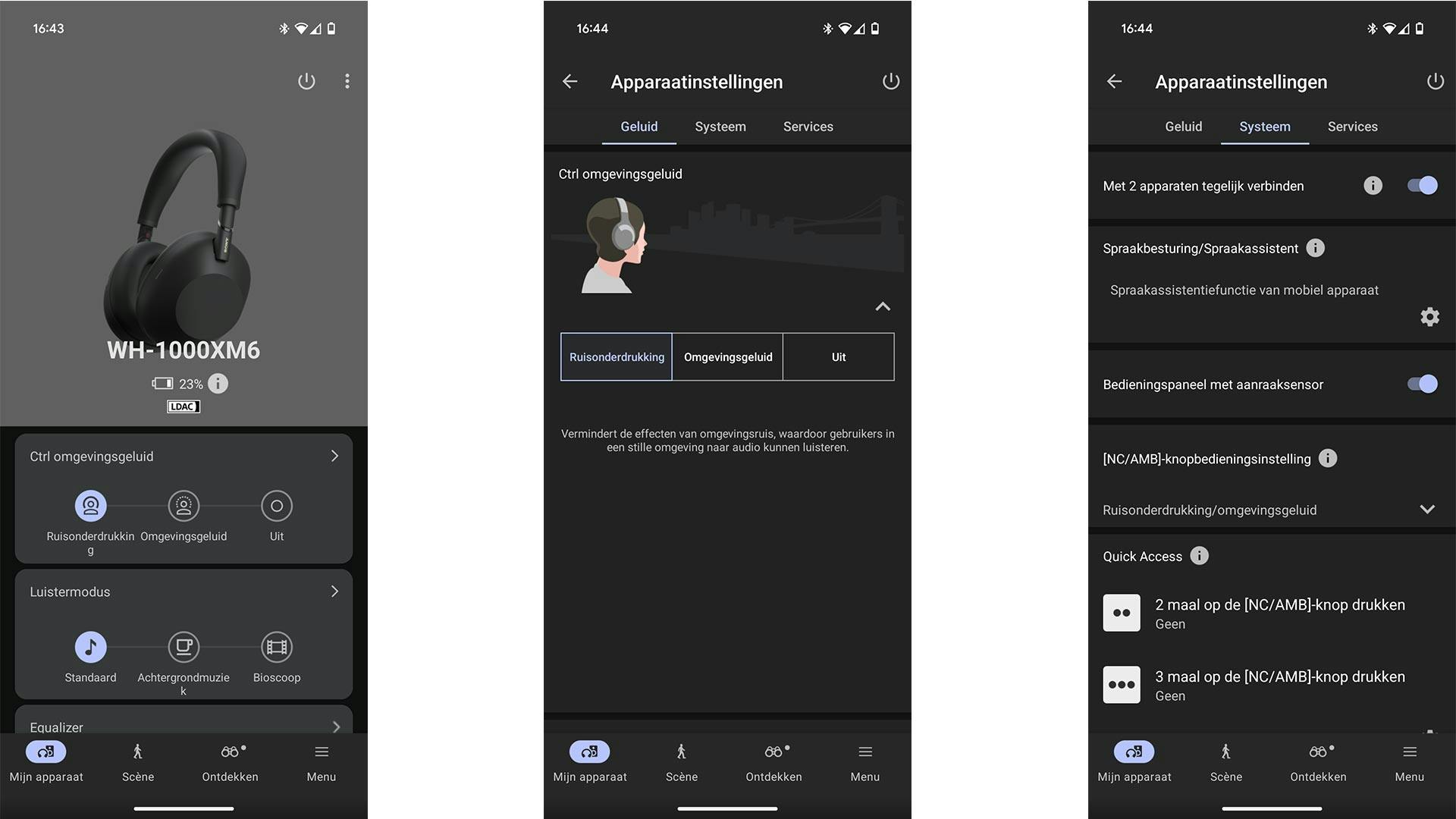 Sommige aanpassingen zijn klein maar doordacht. Zo is de powerknop nu iets verzonken, waardoor je hem sneller op de tast vindt. De knop voor noise cancelling heeft bovendien een extra functie gekregen: je kunt er de microfoon mee dempen of activeren tijdens een telefoongesprek. De rest van de bediening verloopt via het aanraakgevoelige oppervlak op de rechter oorschelp. Dat werkt op zich prima, maar je moet wel even wennen aan de precieze gebaren. Bovendien blijft de aanraakbediening gevoelig voor fouten, waardoor we zelf liever kiezen voor fysieke knoppen of de bijbehorende app.