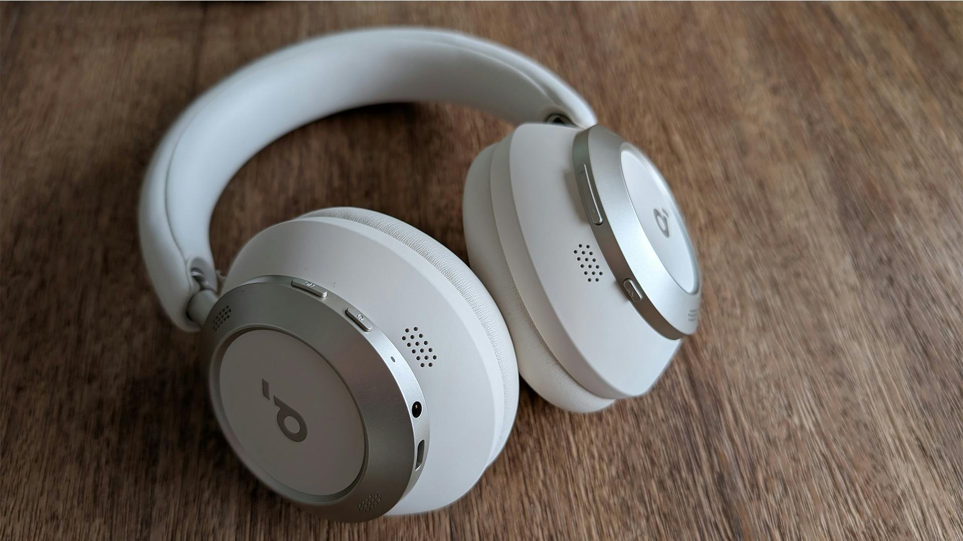 Op de oorcups treffen we verschillende knoppen en aansluitingen aan. De buttons laten zich blind bedienen, omdat ze allemaal op een prettige afstand van elkaar zitten. Ze steken ook net genoeg uit voor je duim om het verschil in hoogte op te merken, zonder dat het iets afdoet aan het strakke, premium-ogende ontwerp. We voegen daar bewust 'ogende' aan toe, omdat de Soundcore Space One Pro voornamelijk bestaat uit plastic. Dat heeft als voordeel dat het model niet zwaar is. Het nadeel van dat materiaal is dat het wel een beetje goedkoop aanvoelt.