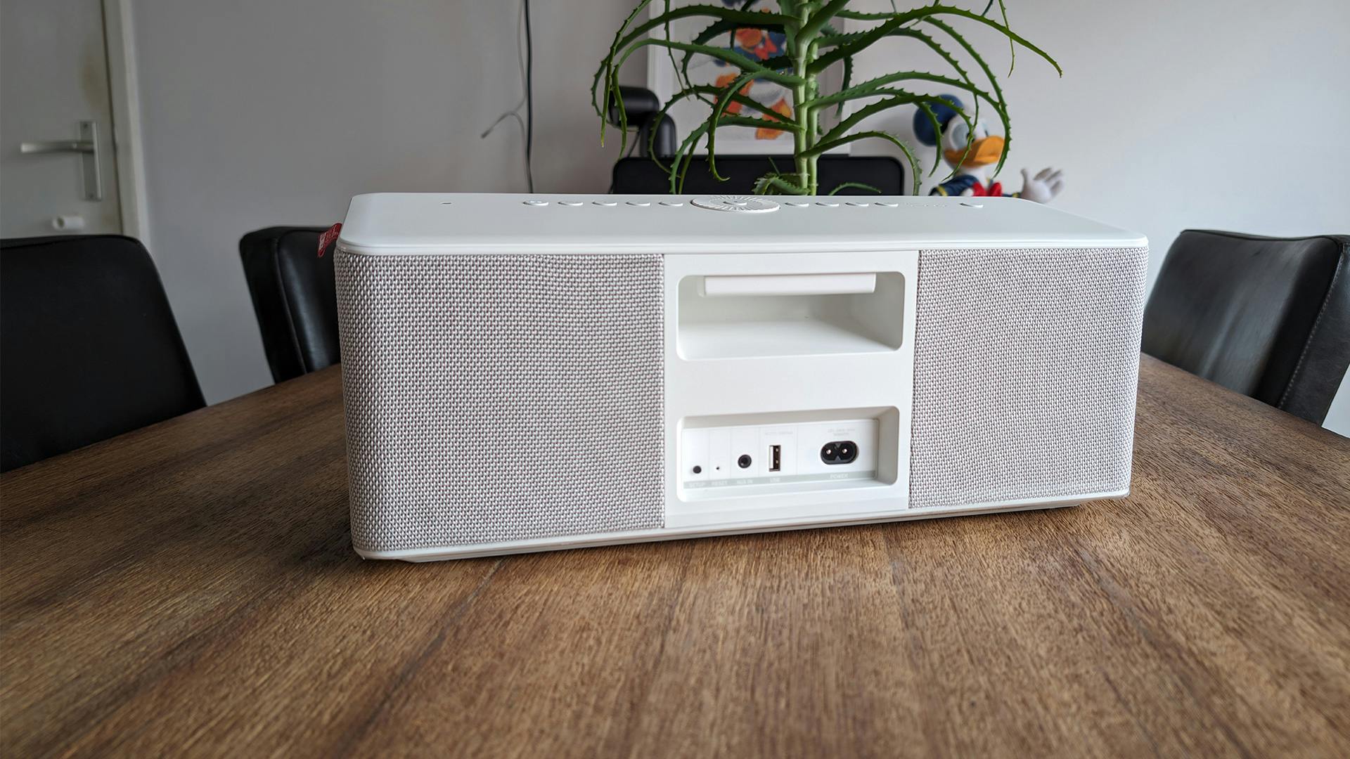 De prijs is fors, maar je krijgt daar een flinke speaker voor terug. De Teufel Motiv Home speelt muziek af bluetooth (helaas alleen via de basale aac-audiocodec), wifi (via Google Cast en Apple AirPlay 2) en de aux-poort achterop. Je kunt audio dus zowel draadloos als bedraad beluisteren, waardoor de luidspreker breed inzetbaar is. Achterop zit tevens een usb-poort, maar daar kun je geen audiobron op aansluiten. Die poort is puur bedoeld voor het opladen van bijvoorbeeld een smartphone of tablet die je onderweg meeneemt ... want ondanks het formaat is dit een draagbare speaker.
