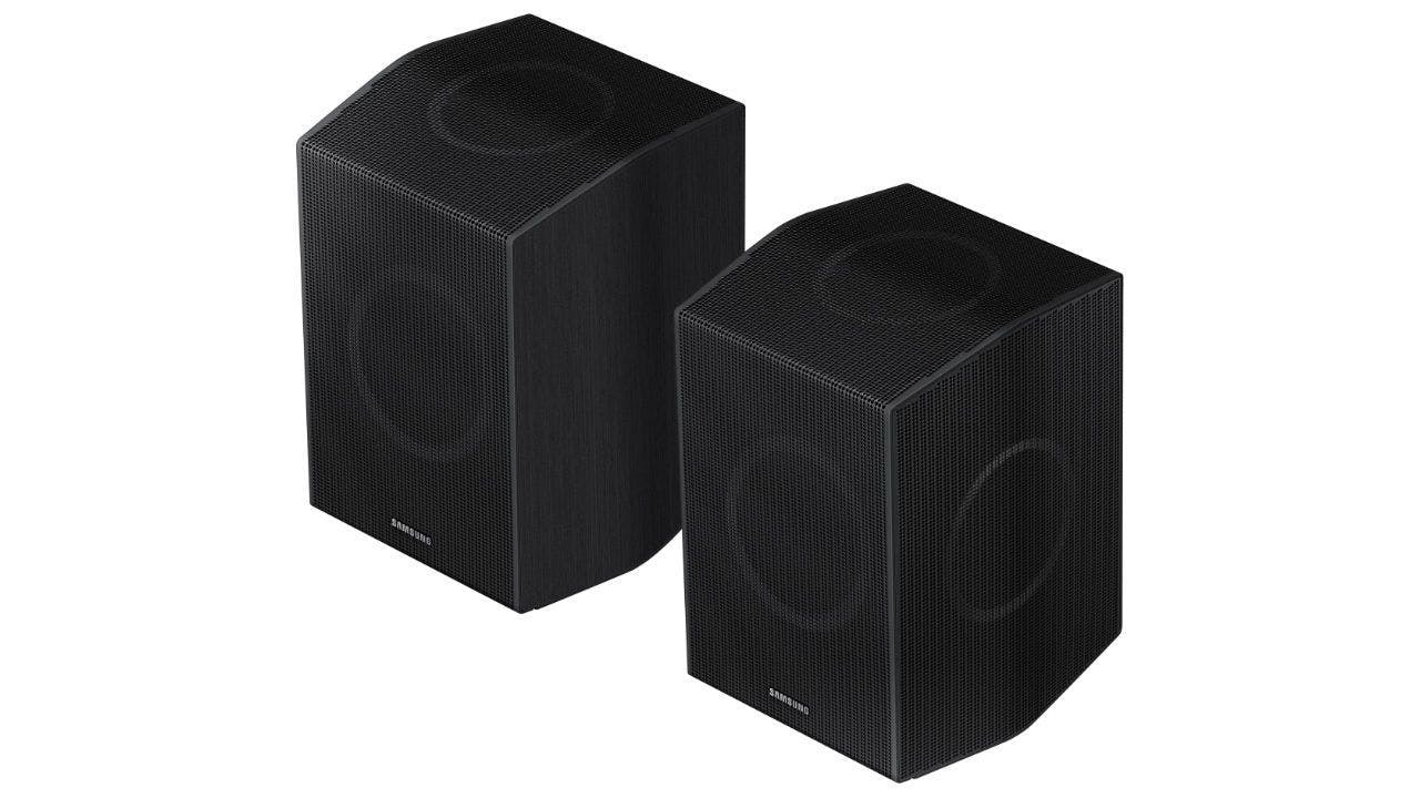 De Samsung HW-Q990B heeft alles aan boord om een omhullende surroundbubbel te creëren rond je zitplaats. Maar doet hij dat ook? Ja, al is er wel een ‘maar’. Bij veel soundbars met aparte achter-speaker kun je die toestellen min of meer naast de sofa plaatsen. Dat is hier anders. Voor optimale prestaties parkeer je ze best achter en naast je zitplaats, aldus Samsung. Net zoals Dolby voorschrijft voor professionele surroundopstellingen.