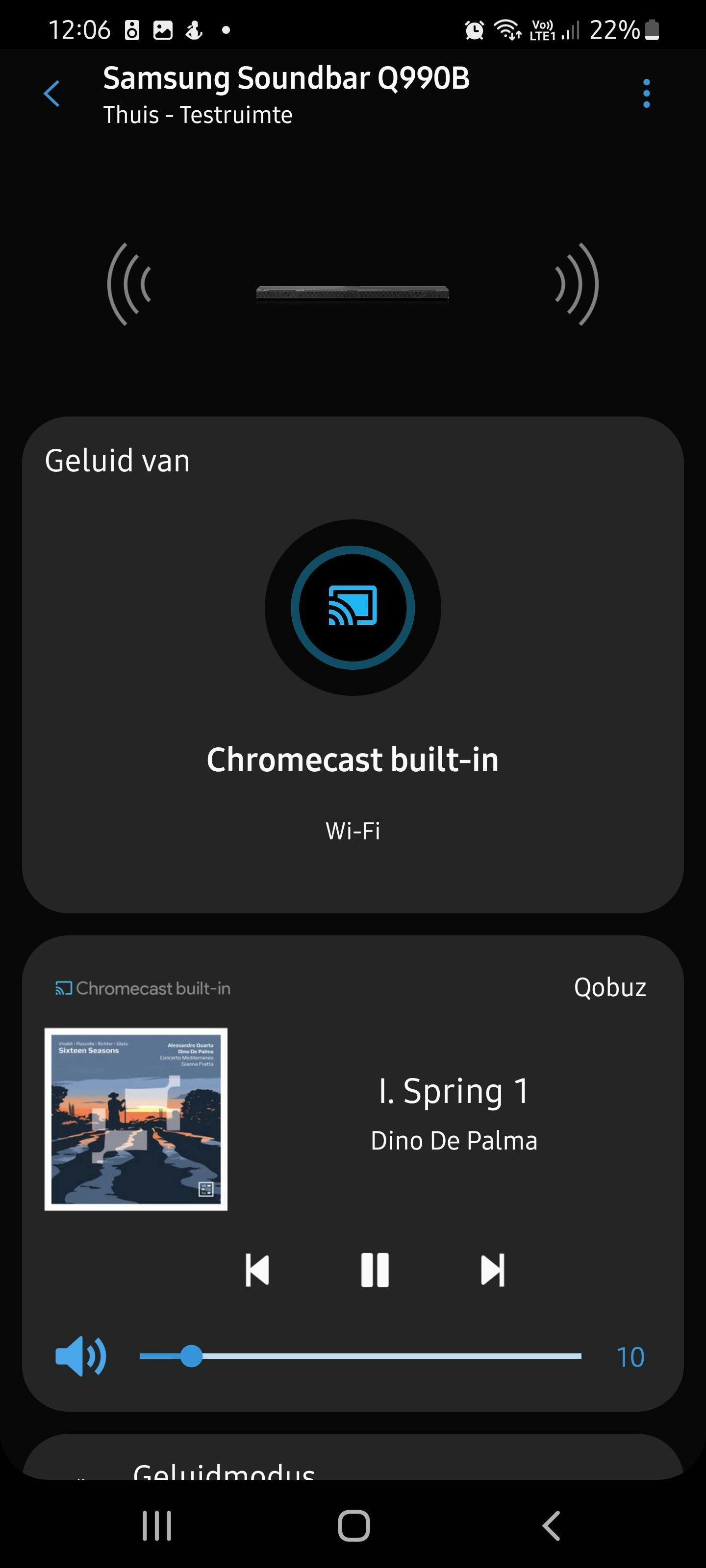 Qua realisme scoort deze Samsung echt, met geluidseffecten die heel driedimensionaal worden neergezet. Bij het afspelen van muziek kun je kiezen tussen een Standard-modus die stereo afspeelt of een Surround-modus die muziek naar alle speakers stuurt. Dat eerste is niet zo indrukwekkend, maar in surround is de HW-Q990B heel muzikaal.