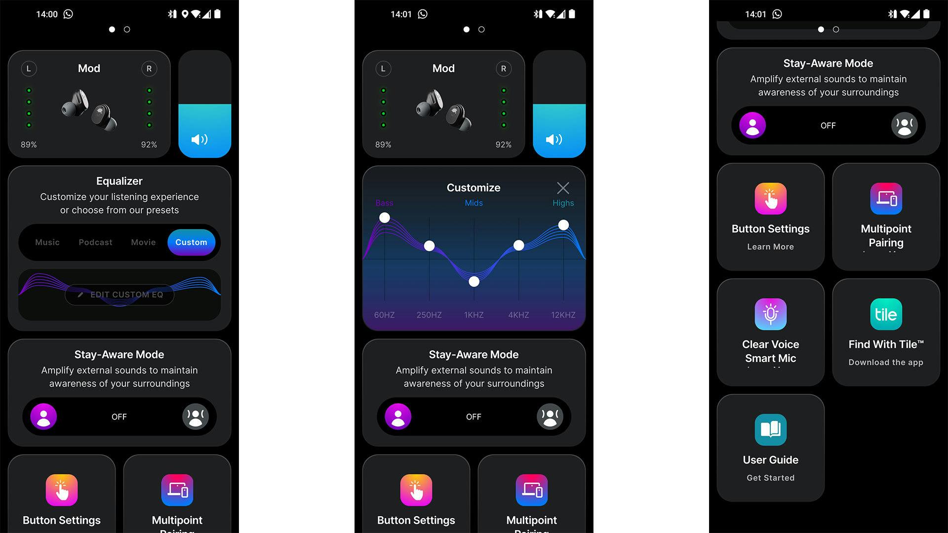 Dan hebben we ook nog de Stay Aware-modus. Dit is een andere benaming voor een transparante modus. Omgevingsgeluiden worden versterkt wanneer je de functie activeert, waardoor je tijdens het sporten of wandelen altijd goed hoort wat er om je heen gebeurt. De oordoppen hebben geen actieve ruisonderdrukking, maar kunnen wel degelijk enkele geluiden buiten de deur houden wanneer je de modus uitschakelt. Verwacht geen wonderen, maar de ‘ruisonderdrukking’ die er is, is subtiel en kun je op sommige momenten echt wel waarderen.