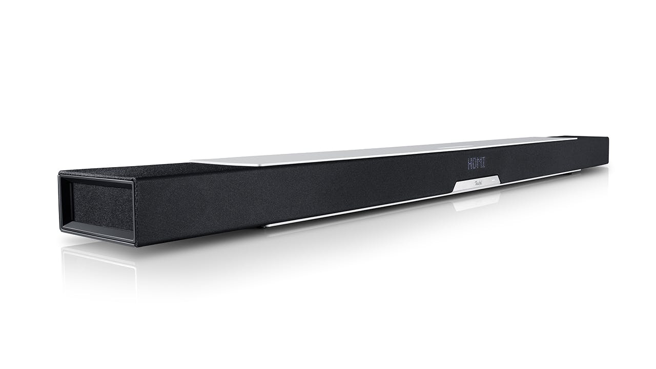 Stiekem is Teufel al een tijdje aanwezig in het segment voor de kritische muziekliefhebber, met het submerk Raumfeld. De Raumfeld-serie was te herkennen aan de zwart-witte behuizingen, waar Teufel zelf doorgaans net als Henry Ford in alle kleuren leverde, zolang het maar zwart was. Nu het bedrijf het premiummerk voortaan onder zijn eigen merknaam uitbrengt zien we de kloeke Teutoonse Raumfeld-belijningen ineens terug met een Teufellogo erop. Zoals ook op deze nieuwe Cinebar Lux. Dat is een stevige soundbar van meer dan een meter breed - voor gebruik met dito televisies - waarbij je geen subwoofer meer nodig hebt, claimt de fabrikant.
