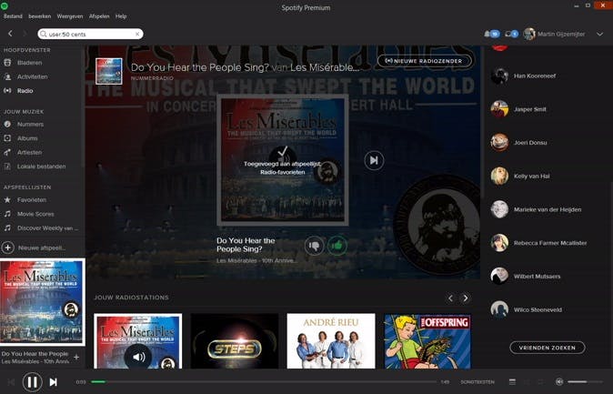 Start Spotify, log in met je account en druk in het linkerdeelvenster op Radio. Er wordt direct een radiostation voor je geselecteerd dat je kunt afspelen. Onder het kopje Jouw radiostations kun je een ander radiostation selecteren en rechtsboven kun je een nieuw radiostation aanmaken door te klikken op Nieuwe radiozender en een artiest of liedje te zoeken. Het enige dat je nu nog hoeft te doen, is lekker luisteren naar muziek en per nummer aangeven of je het mooi vindt of niet. In het begin zal Spotify het vaker mis hebben dan goed, maar hoe vaker je aangeeft wat je mooi vindt, des te beter het systeem voor je zal werken.