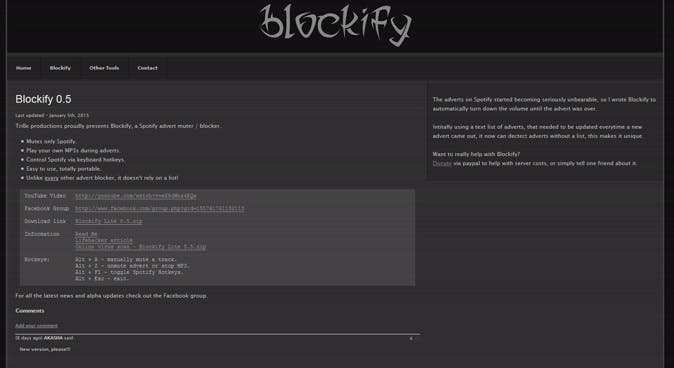 Het feit dat Spotify je de mogelijkheid biedt om ook gratis naar muziek te luisteren, heeft natuurlijk alles te maken met de irritante reclames die tussendoor komen. Is een betaald account nemen de enige manier om daar vanaf te komen? Nee, er zijn programma's die de reclames onderdrukken, zoals Blockify, die je de mogelijkheid geeft om een mp3 te laten afspelen wanneer er een advertentie wordt geactiveerd. Je downloadt Blockify hier, echter wel op eigen risico. Hoewel er nog geen voorbeelden bekend zijn van mensen die om die reden geblokkeerd zijn, is het niet duidelijk of het onderdrukken van de advertenties strafbaar is of niet.