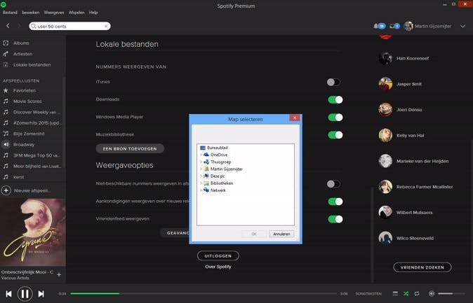 Hoewel het aanbod aan muziek op Spotify gigantisch is, zul je af en toe ook tegen artiesten aanlopen die volledig ontbreken op de muziekdienst (Taylor Swift is daar een goed voorbeeld van). Natuurlijk kun je dan uitwijken naar een ander programma om de muziek te beluisteren van de artiesten die je op Spotify mist, maar gelukkig is dat niet nodig. Het is namelijk sinds enige tijd ook mogelijk om je eigen muziekcollectie te beluisteren in Spotify. In het linkerdeelvenster zie je het kopje Jouw muziek, met helemaal onderaan Lokale bestanden. Wanneer je daarop klikt, zul je in eerste instantie niets zien, je moet Spotify namelijk vertellen waar die bestanden staan. Je doet dit door bovenin te klikken op Bewerken / Voorkeuren en vervolgens onder het kopje Lokale bestanden te klikken op Bron toevoegen. Overigens kun je hier ook aangeven dat de muziek die je gekocht hebt in iTunes moet worden getoond. Wanneer je nu in het linkerdeelvenster klikt op Lokale bestanden, vind je de muziek uit de mappen die jij als bron hebt toegevoegd.