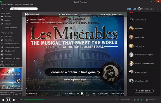 Een paar jaar geleden kondigde Spotify met veel bombarie de mogelijkheid tot het installeren van apps aan. Door middel van apps kon je, net als op bijvoorbeeld Facebook, de functionaliteit van het programma flink uitbreiden. Zo was er een populaire app genaamd MusixMatch waarmee je de songteksten van het liedje kon bekijken dat je aan het luisteren was. Helaas heeft Spotify de apps inmiddels alweer de nek omgedraaid, met uitzondering van MusixMatch. Wanneer je rechtsonder klikt op songteksten (naast de afspeelbalk), zul je de oude vertrouwde app als enige overlevende zien.