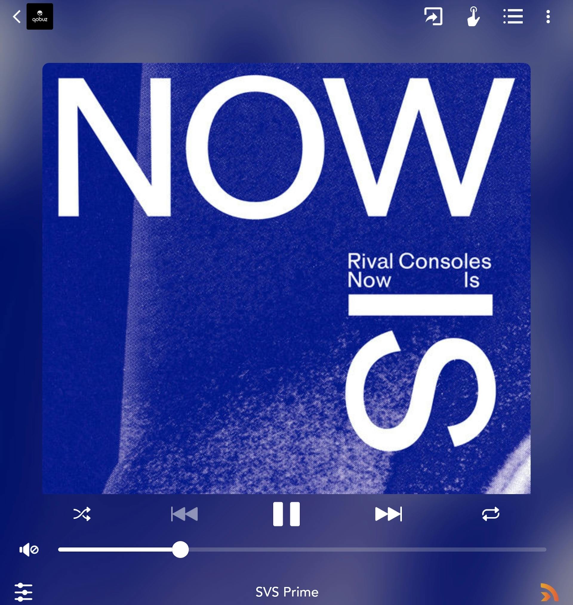 Het hoofdscherm van Play-Fi toont wat er momenteel wordt afgespeeld. Je ziet in een oogopslag de artiestennaam en de naam van de track, met daaronder mediaknoppen en de volumeregeling. Met het plusteken onderaan koppel je een tweede Play-Fi-apparaat.