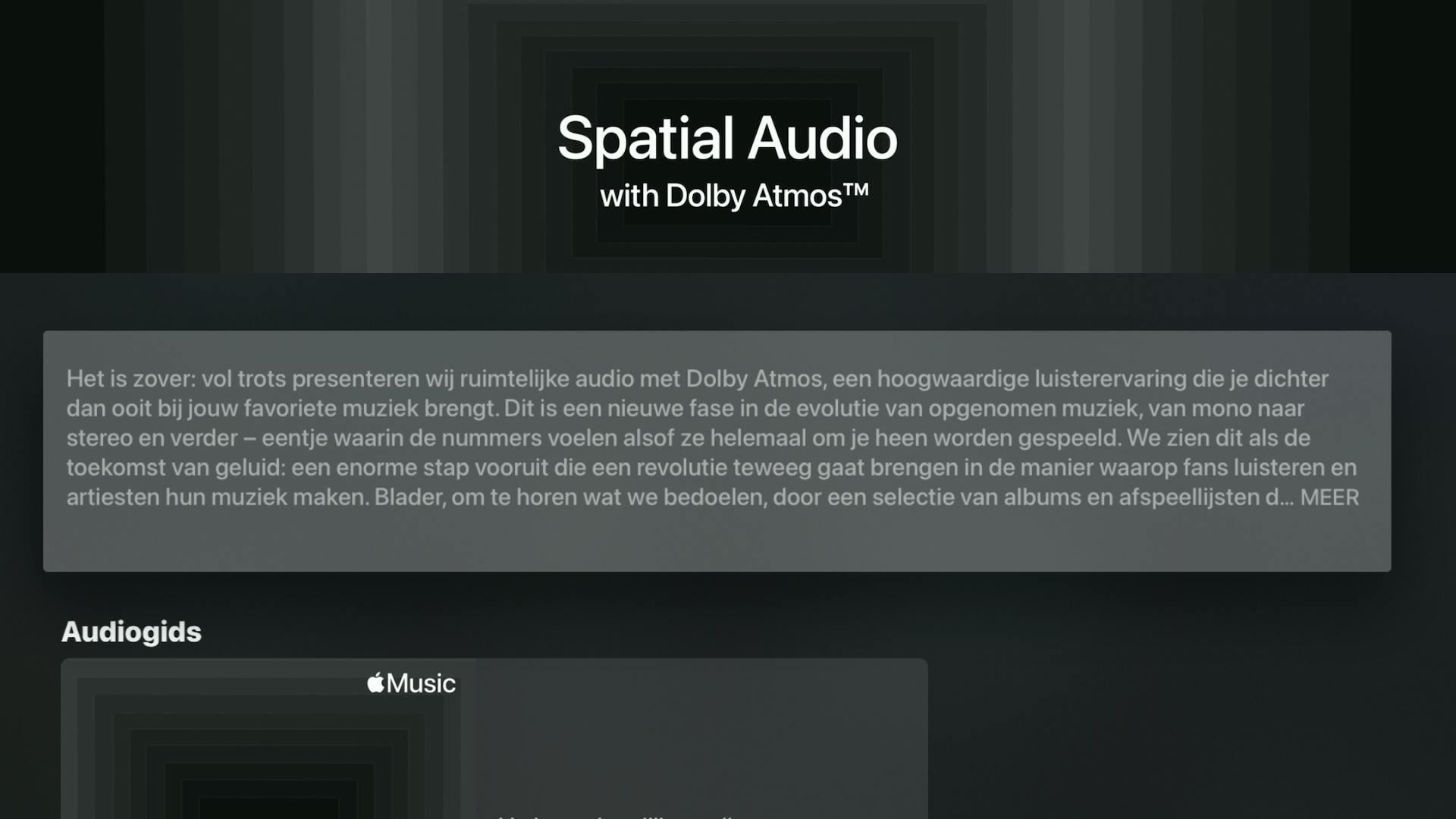 Ook hier speelt Apple een voortrekkersrol. Via Apple Music biedt het veel muziek aan in Dolby Atmos. Beluister je deze nummers bijvoorbeeld via een soundbar, dan krijg je regulier Dolby Atmos-geluid. Gebruik je echter AirPods Pro verbonden met een Apple TV 4K, dan wordt het ‘Spatial Audio with Dolby Atmos’. Het blijft dan Atmos-geluid, maar wel met headtracking erbij.