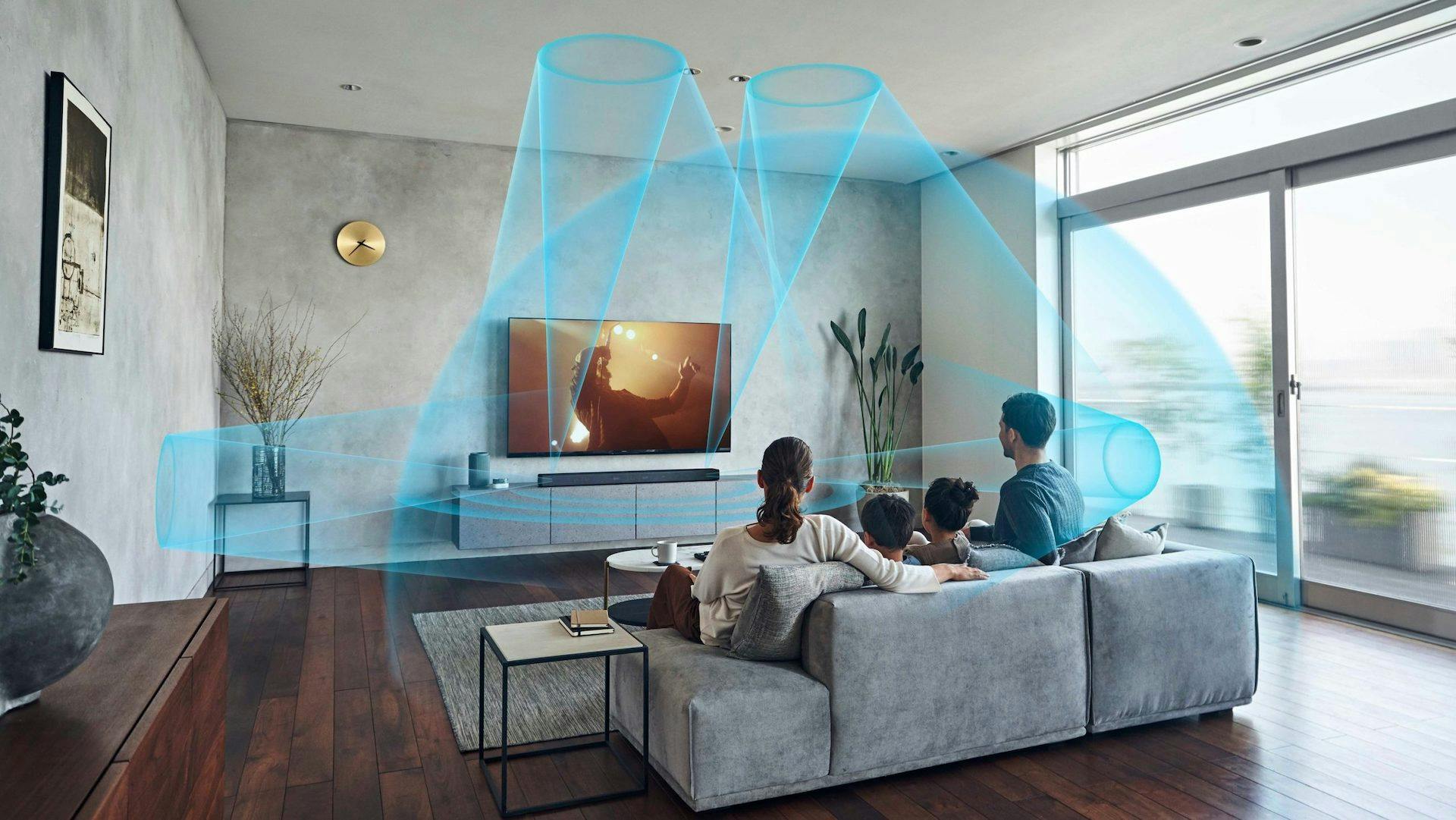 Een soundbar biedt een betaalbaar alternatief. Die verspreidt ook geluid via verschillende kanalen en speakers, maar alles zit in een grote kast die je bij de tv plaatst. Slimme soft- en hardware zorgen ervoor dat de verschillende geluiden correct door de ruimte bewegen.