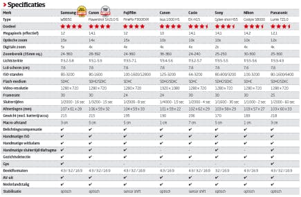 Een harde conclusie is nog niet zo eenvoudig. De ene camera heeft een fraaie groothoekstand, de ander scoort weer goed op telebereik. De ene is slank, de ander stevig. Sommige modellen beschikken daarnaast over bijzondere functionaliteiten, zoals een handmatige sluitertijd/diafragma of een gps-chip. Deze opties kunnen voor sommige consumenten extra zwaar wegen en zijn voor anderen compleet oninteressant.