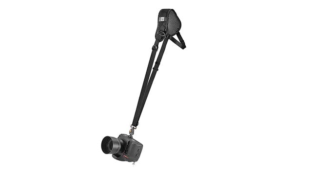 De BlackRapid Sport Breathe is voorzien van een gewatteerd schouderkussen, dat ook nog eens ademt. Een extra riempje dat onder de oksel doorgaat, zorgt ervoor dat de camera dicht tegen het lichaam blijft tijdens het bewegen.
