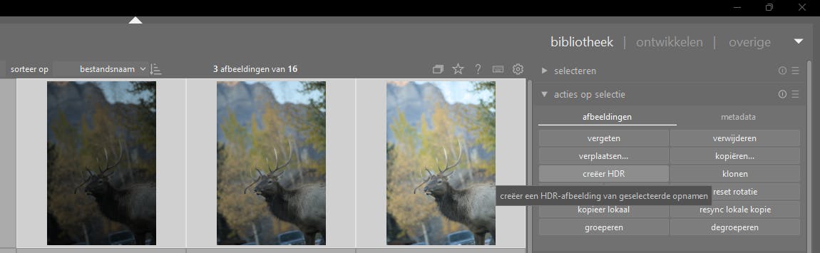 In darktable doe je dit door de foto’s te selecteren in de bibliotheek, waarna je in het rechterdeelvenster Acties op selectie opent en Creëer HDR selecteert. Let wel, overdreven HDR-effecten kunnen tot onnatuurlijke kleuren en halo-effecten leiden. Dit kun je tegengaan met tonemapping. In darktable vind je dit bij Toon equalizer en in RawTherapee op het tabblad Fotobewerker bij Tonemapping.