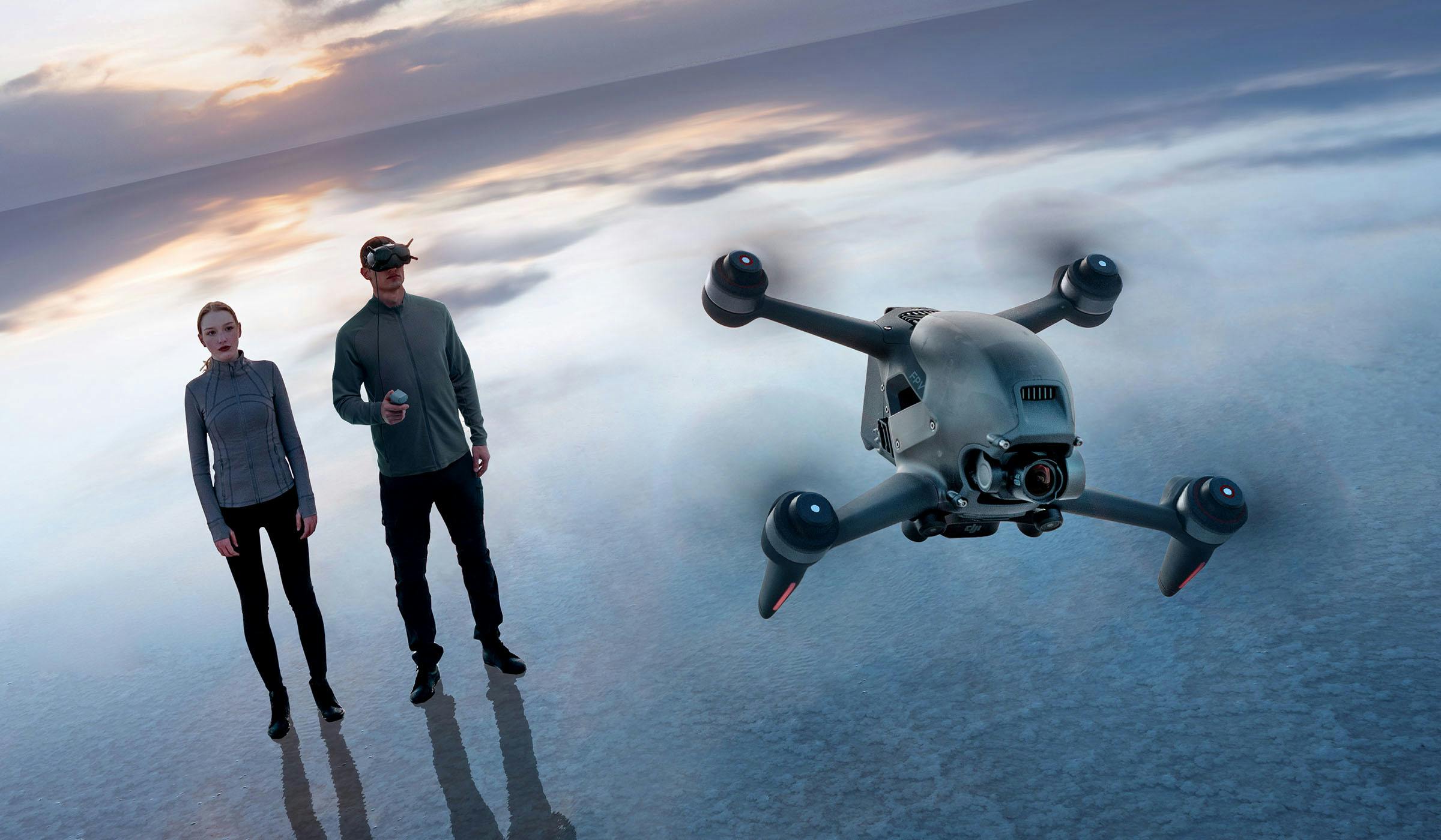 De 4K-camera aan een bewegelijke gimbal heeft met 150 graden een mooi breed zicht op de actie. In 4K schiet je maximaal met 60 frames per seconde, maar wil je echt mooie slow-motionshots, film dan in Full HD met 120 fps. Als je het pakket koopt voor 1349 euro krijg je er ook de DJI FPV Goggles V2 erbij. Dat is een soort VR-bril, waardoor je mee kunt kijken tijdens de vlucht. Zo kun je je drone kilometers verderop nog steeds laten stunten.