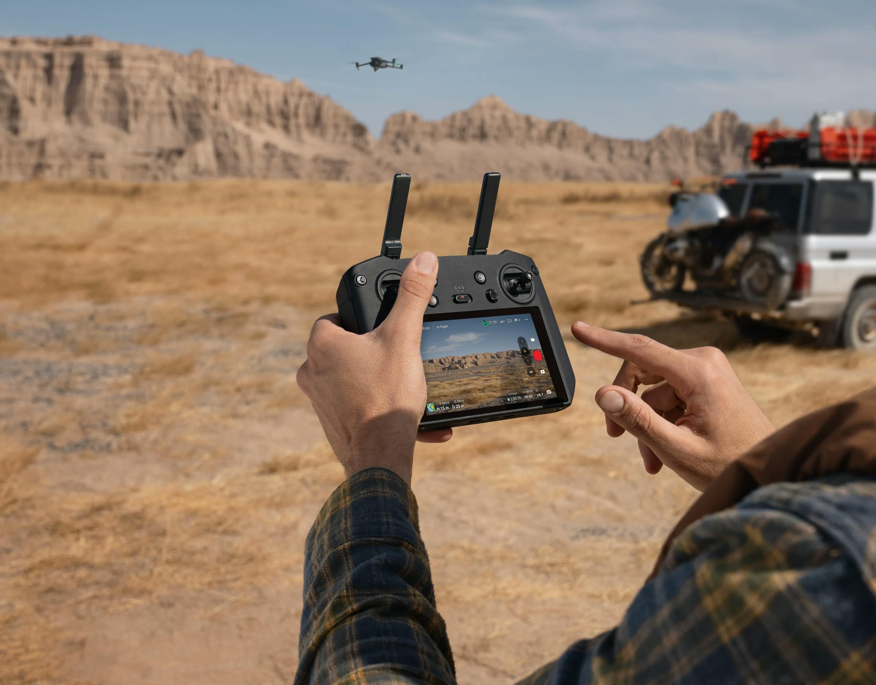 De Potensic Atom 2 Fly More Combo bestuur je met de meegeleverde controller. Dit bedieningsapparaat heeft een geïntegreerde houder voor jouw smartphone, zodat je tijdens de vlucht live kunt meekijken. De video-overdracht werkt op een afstand tot hoogstens tien kilometer. Onder leiding van de aanwezige Sony-sensor legt deze drone video's vast op een maximale resolutie van 3840 × 2160 pixels. In combinatie met een framesnelheid van dertig beelden per seconde ervaar je een scherp en vloeiend beeld. Je kunt zo nodig tot 4× digitaal inzoomen. Opvallend is verder de maximale fotoresolutie van maar liefst 48 megapixel. Het is de Chinese fabrikant gelukt om net onder de grens van 250 gram te blijven. Kortom, je hoeft voor dit model geen vliegbewijs te halen. Deze Fly More Combo-set bevat onder meer drie accu's, een snellader, extra propellers en een opbergtas.