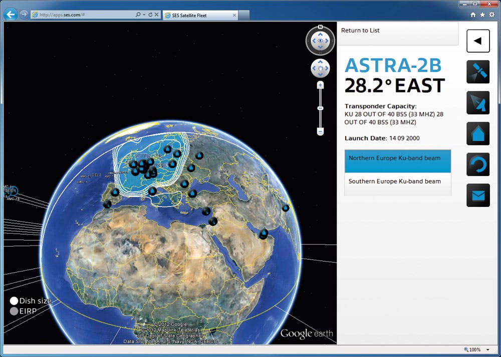 Via apps.ses.com kunt u zien hoe het met de dekking van de diverse satellieten gesteld staat. Met die Astra 2 zit het dus wel goed in ons deel van Europa.