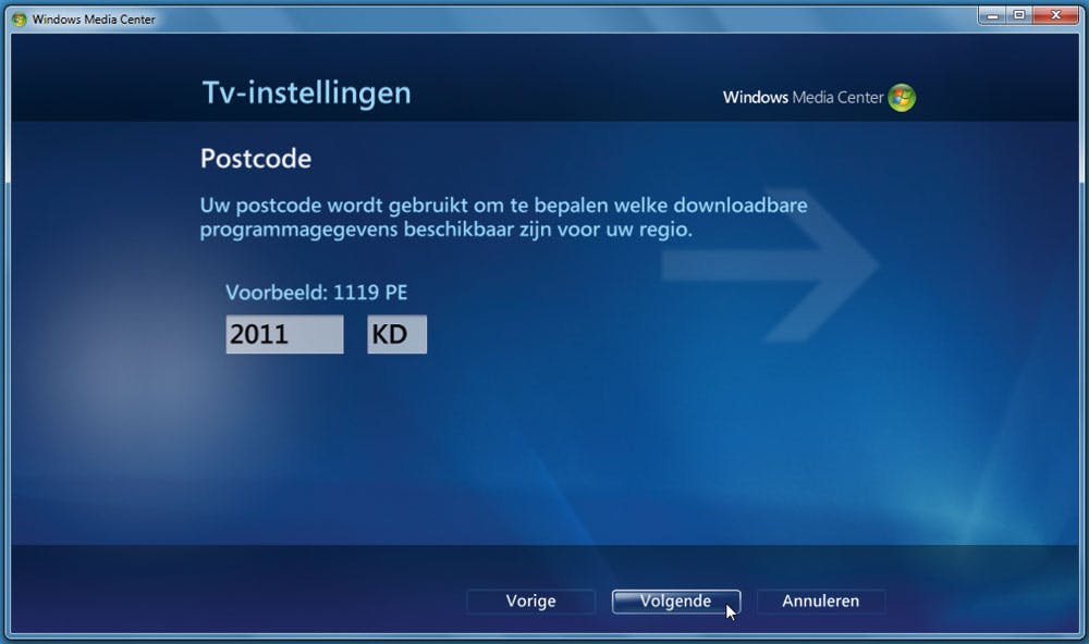 De postcode die wordt gebruikt voor het binnenhalen van de tv-signalen. En dat is dus waar die internetverbinding eventjes voor nodig is.