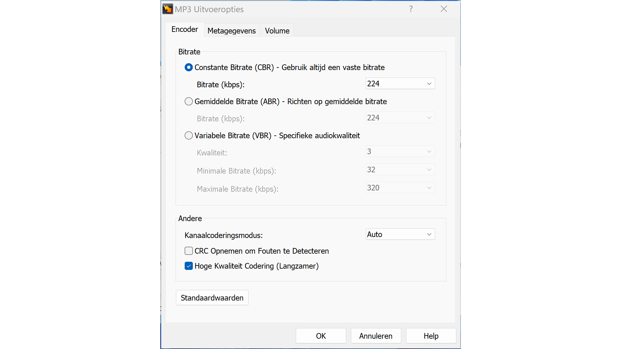 Wil je nog meer controle? Kies dan in het vak Geluidsindeling de gewenste bitrate, bijvoorbeeld 44100 Hz, 192 kbps, Stereo. Heb je minder ervaring op dit vlak, kies dan voor de standaardinstellingen. Wil je alleen muziekbestanden omzetten? In de paragraaf ‘Audio omzetten’ lees je welke slimme tool en stappen je hiervoor gebruikt.