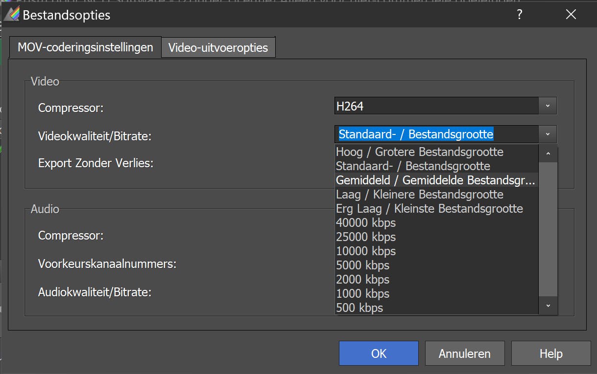 Wil je nog preciezer te werk gaan en ben je een gevorderde gebruiker? Kies dan voor de gewenste bitrate van de video. Bijvoorbeeld 10000 kbps of 5000 kbps. Je hebt hiermee meer controle over het eindresultaat. In hetzelfde venster vind je de optie Export zonder verlies. Standaard bepaalt de software zelf in hoeverre compressie wordt uitgevoerd. Wil je een één-op-éénkopie op het gebied van kwaliteit, dan kies je voor Gebruik export zonder verlies.