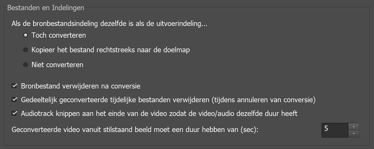 Ook is het fijn om de software automatisch te laten doorwerken bij eventuele foutjes tijdens de conversie. Je kunt het bestand waarbij de fout optrad dan vervolgens apart proberen om te zetten. In de sectie Fouten kies je voor Negeer fout en ga door met conversie van andere bestanden. Heb je veel bestanden en wil je niet dat de oorspronkelijke versies behouden blijven? Bijvoorbeeld omdat je hiervan al een back-up hebt of omdat deze nog op de bron-dvd blijven staan? Dan kun je de oorspronkelijke versies automatisch laten verwijderen. Dit scheelt kostbare schijfruimte. In het optievenster kies je voor de tab Conversies en zet je een vinkje bij Bronbestand verwijderen na conversie.