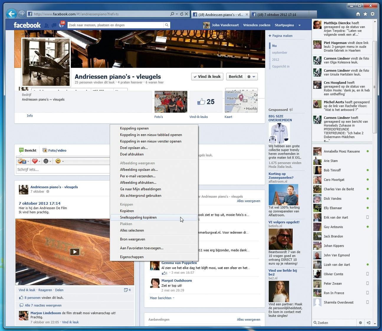 We vallen met de deur in huis door de hyperlink op de vragen van een volstrekt willekeurige video die ergens op Facebook staat. Zoals u dat gewend bent, gebruikt u daarvoor het contextmenu van de webbrowser (in dit geval Internet Explorer) en met behulp van de optie ‘Snelkoppeling kopiëren’ haalt u de beoogde hyperlink over naar het Prikbord van Windows.