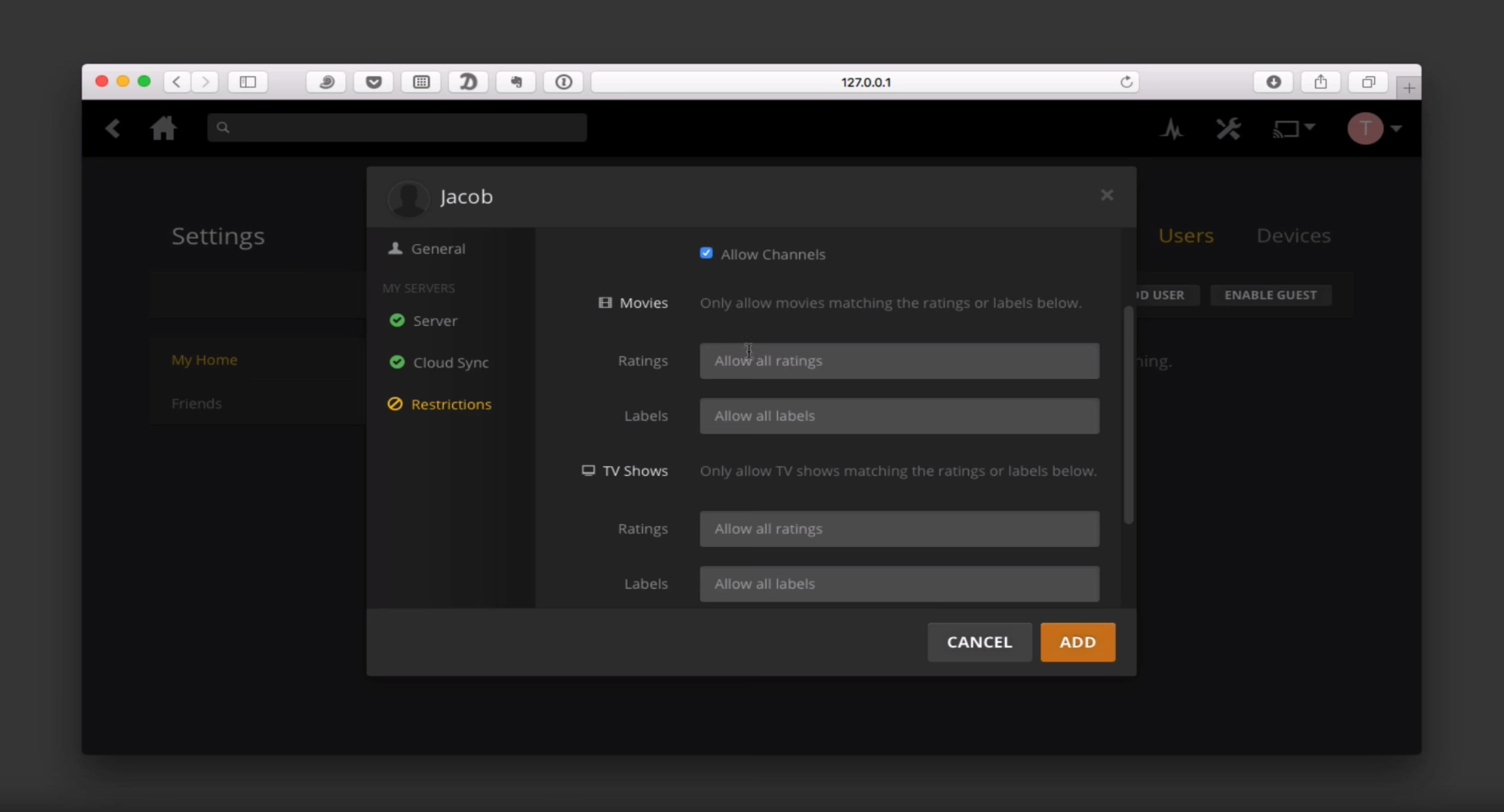 Hoewel een Plex Pass niet nodig is voor de meeste functies, is een betaald account wel handig als meerdere mensen gebruikmaken van Plex Media Center. Zonder abonnement mag je via Instellingen / Gebruikers geen extra gebruikers en gasten toevoegen. Hoewel alle gebruikers standaard toegang hebben tot dezelfde omgeving, heeft iedereen zijn eigen voorkeuren en (verder)kijkgeschiedenis. Kies je bij het toevoegen van gebruikers voor een beheerd account, dan kun je bepaalde content afschermen. Denk aan films of series die ongeschikt zijn voor kinderen.
