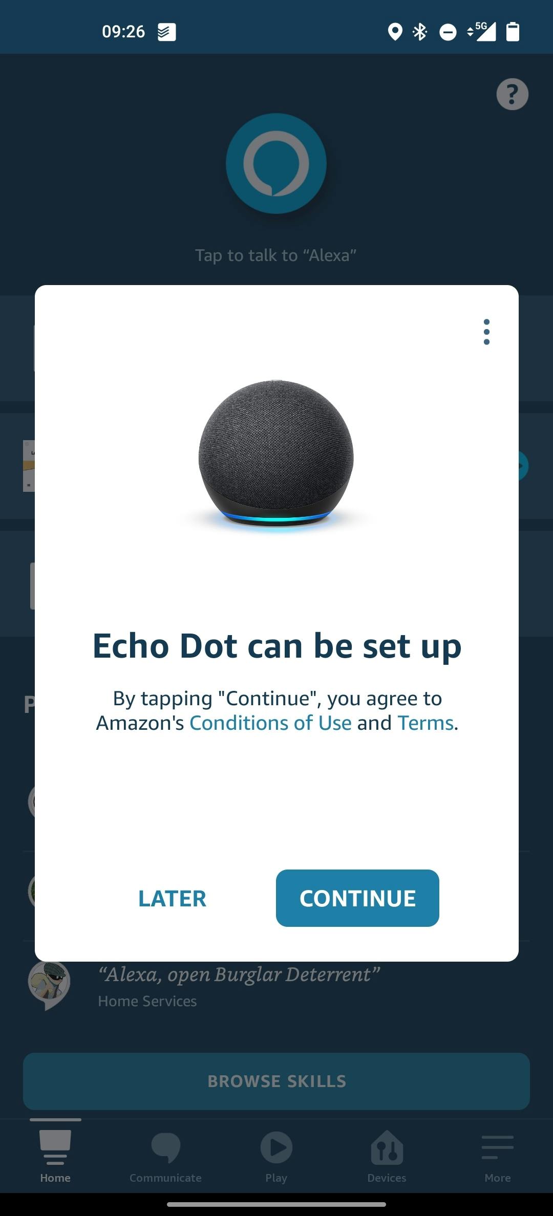 De kennismaking met de Engelstalige speakers begint bij het installeren. Steek de stekker van de Echo (Dot) in het stopcontact en download de Alexa-app voor Android of iOS. Deze app is enkel in het Engels te gebruiken. Log in of maak een account aan en volg de eenvoudige stappen om je speaker te installeren. Dit duurt slechts een paar minuten.