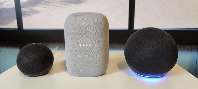 De Echo-luidsprekers zijn al langer in het buitenland te koop en sinds kort ook in Nederland. Het gaat om twee modellen: de Echo Dot (60 euro) en Echo (100 euro). Amazon leende beide apparaten drie weken uit zodat ik ze kon testen en kon vergelijken met de Google Nest Mini (40 euro) en Nest Audio (95 euro). Geduchte concurrenten die gebruikmaken van Google's Assistent-spraakassistent en wél Nederlands spreken.