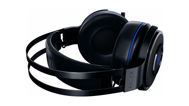 Razer ontwikkelde twee versies van de Thresher 7.1. Het exemplaar met groene accenten sluit naadloos aan bij de Xbox One, want dit product ondersteunt het zogeheten Windows Sonic Surround Sound. Je hoort dus geluid uit verschillende richtingen. Het ‘blauwe’ exemplaar is juist bedoeld voor PlayStation 4-bezitters.
