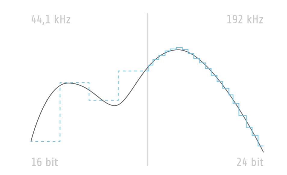 Niet voor niets hebben veel high-res muziekbestanden een samplefrequentie van 96 of 192 kHz. De bitdiepte slaat op het dynamische bereik van het audiobestand. Bij een 16bit-audiostream zijn er zestien bits gebruikt om een enkele sample vast te leggen. High-res muziek heeft een diepte van 24 bits, waardoor muziek op een goed audiosysteem dynamischer en ‘losser’ klinkt.