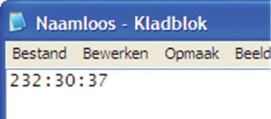Start nu Word en klik in het menu Beeld op Weblay-out. Noodzakelijk, want anders zien we geen achtergrondkleuren. Behalve Word start u nu ook het Windows Kladblok, te vinden in het menu Start onder Alle programma's en Bureau-accessoires. Klik in Kladblok in het menu Bewerken op Plakken, waarna drie getallen ingevoegd worden, gescheiden door een dubbele punt. Dit zijn de RGBwaarden van de net gemeten kleur.