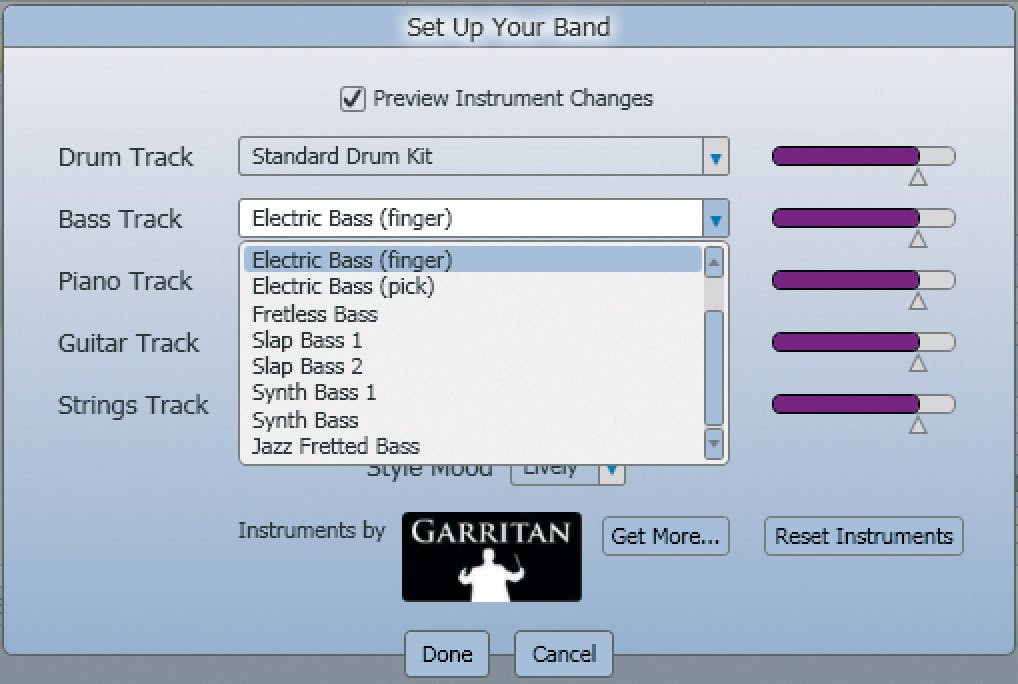 Wanneer u tevreden bent over de gespeelde akkoorden is het uiteraard verstandig om uw werk weer op te slaan. Wij willen u tot slot nog twee andere mogelijkheden laten zien om het nummer naar uw hand te zetten. Door te klikken op de knop Mixer kunt u niet alleen de aard van de begeleiding aanpassen van Light naar Lively (zie ook stap 2) maar zelfs de instrumenten veranderen (ander type bas, enzovoort) of hun volume wijzigen. Door in het hoofdscherm te klikken op Browse achter de naam van de muziekstijl kunt u zelfs uw opgenomen zang in een heel ander genre spelen, mits de maatsoort maar dezelfde blijft. Tot slot kunt u via Save Song, Export uw muziek zelfs als wav-bestand opslaan om uw eigen hit-cd te bakken. Veel plezier!