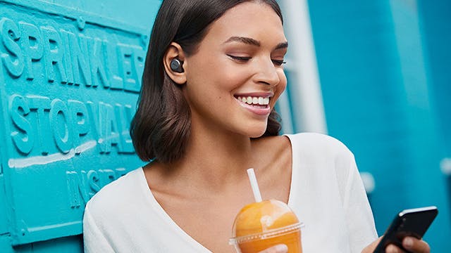 De Jabra Elite 75t zijn bestand tegen stof en water volgens de IP55-classificatie. Je verbindt deze oordoppen tegelijk met twee bluetooth-apparaten en ze onthouden de acht laatste gekoppelde apparaten. De kleine, zwarte doppen passen comfortabel in de gehoorgang. Ze blijven goed zitten als je ze correct (met een draaibeweging) inbrengt. Deze doppen zijn ook verkrijgbaar in de kleuren ‘Titanium’ (grijs) en ‘Gold’ (beige).