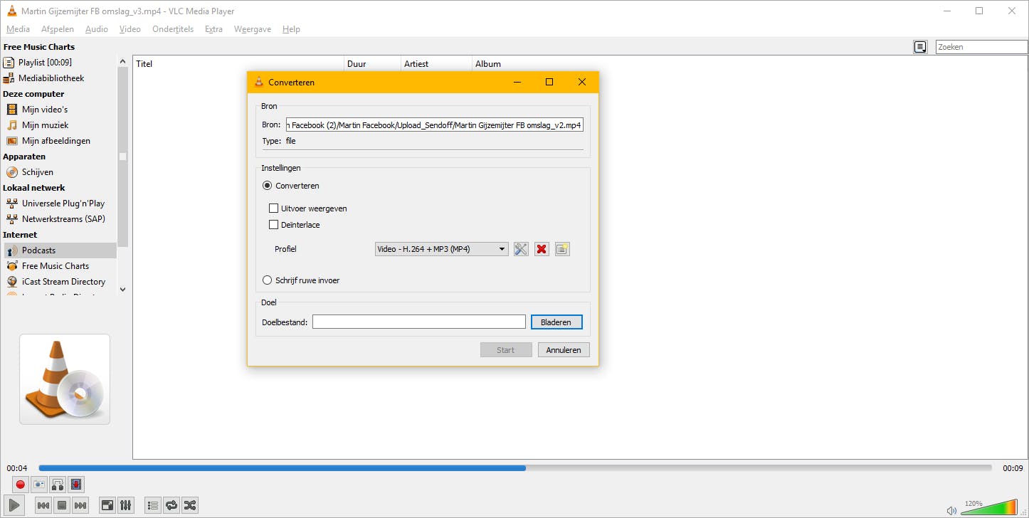 Heb je alles naar wens ingesteld, dan klik je op Converteren/opslaan en selecteer je, net als in de eerste stap, hoe je de film wilt opslaan (we adviseren de standaardwaarde die VLC toont). Daarna klik je op Starten en hoef je slechts te wachten tot dit proces is voltooid.