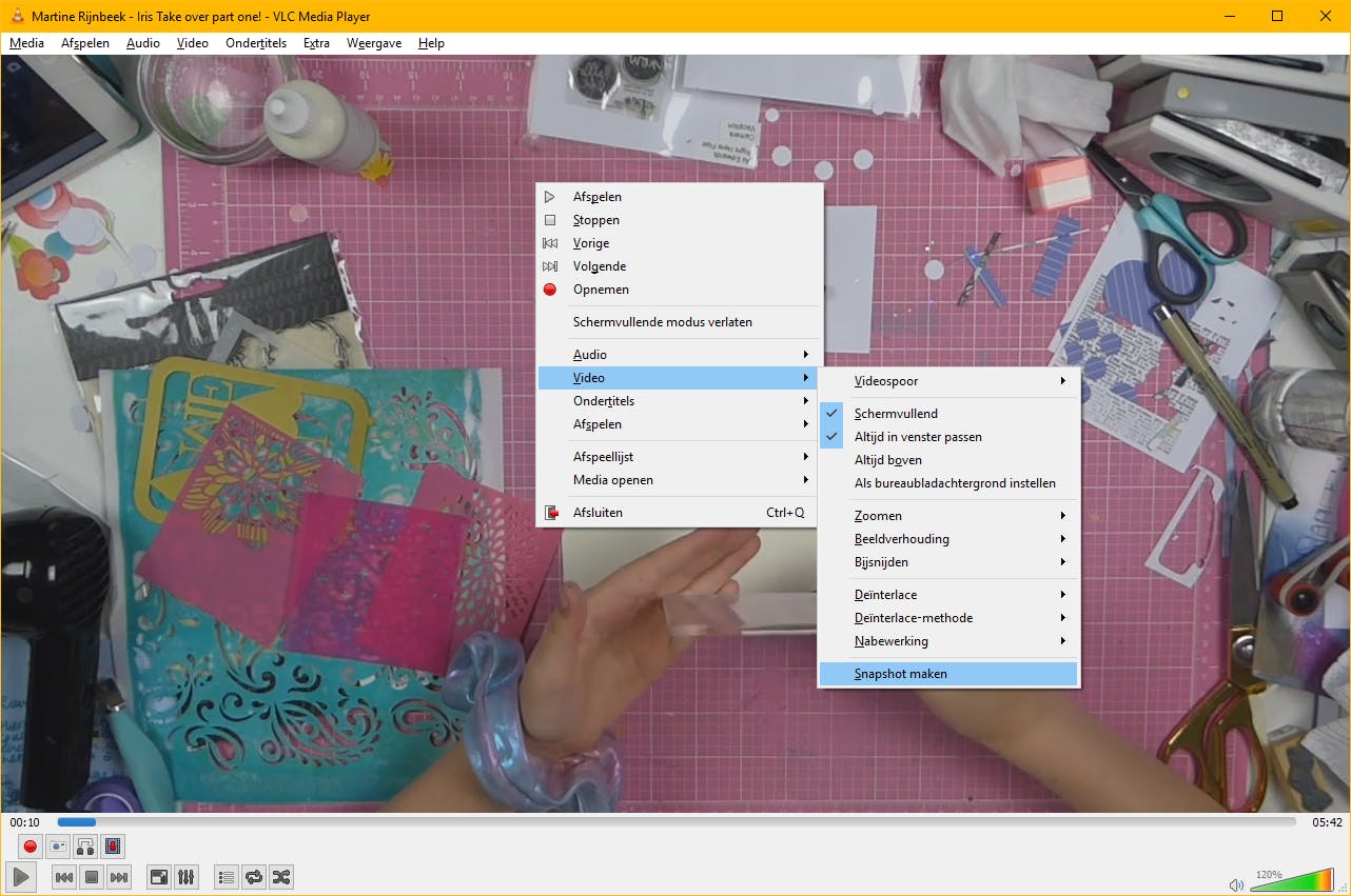 Open het programma en start de video waarvan je een screenshot wilt hebben. Pauzeer de video precies op het shot dat je wilt hebben, rechtsklik vervolgens op de video en kies voor Video, Snapshot maken. De still van de video wordt nu automatisch opgeslagen in de map Afbeeldingen in Windows, waarbij de interface-elementen als de afspeelknop uiteraard niet zijn inbegrepen.