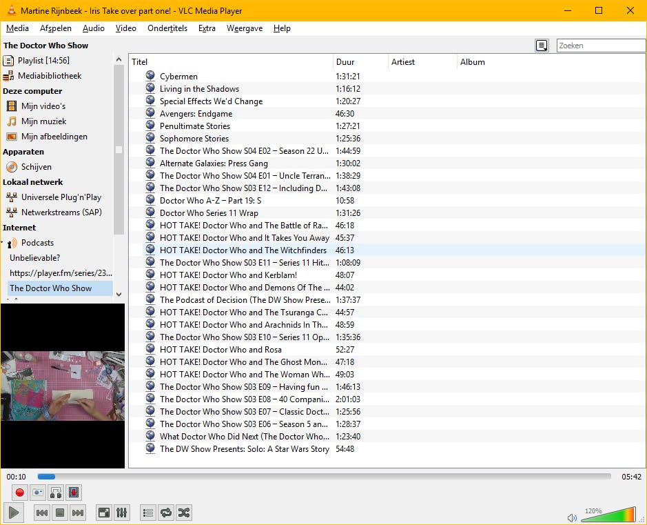 Zorg ervoor dat het deelvenster Afspeellijst is ingeschakeld door te klikken op Weergave, Afspeellijst. In het deelvenster dat verschijnt, klik je onder het kopje Internet op het plusteken naast Podcast. Plak hier de url van de podcast waar je graag naar luistert zodat deze automatisch wordt toegevoegd aan VLC.