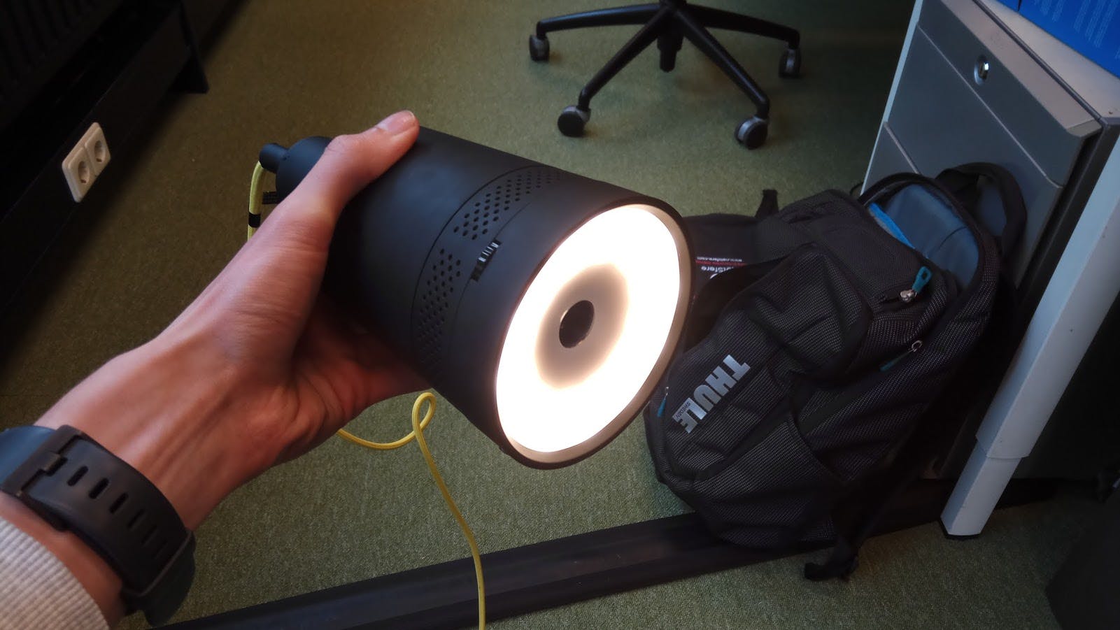 Over het relatief korte snoer van 1,80 meter zijn we niet zo enthousiast. Wanneer je de Beam op het stopcontact aansluit, heb je mogelijk een verlengsnoer nodig om de lamp op de juiste plek te zetten. Je tweede optie is de Beam in een E26/E27 fitting draaien. In het plafond bijvoorbeeld, zodat de lamp recht naar beneden schijnt en projecteert.