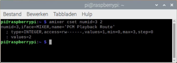 Stop na de installatie de sd-kaart in de Raspberry Pi en start deze op. Doorloop de configuratie. We raden aan de bekabelde netwerkverbinding te gebruiken. Als de Pi voor het eerst start, voer je via de wizard de nodige software-updates uit. Vaak wordt het geluid standaard naar de 3,5mm-audio-uitgang gestuurd. Als dat zo is, kun je de audio-uitvoer wijzigen naar de hdmi-poort. Open LXTerminal linksboven in de hoek en geef de opdracht amixer cset numid=3 2. Het geluid wordt nu via de hdmi-aansluiting verstuurd.